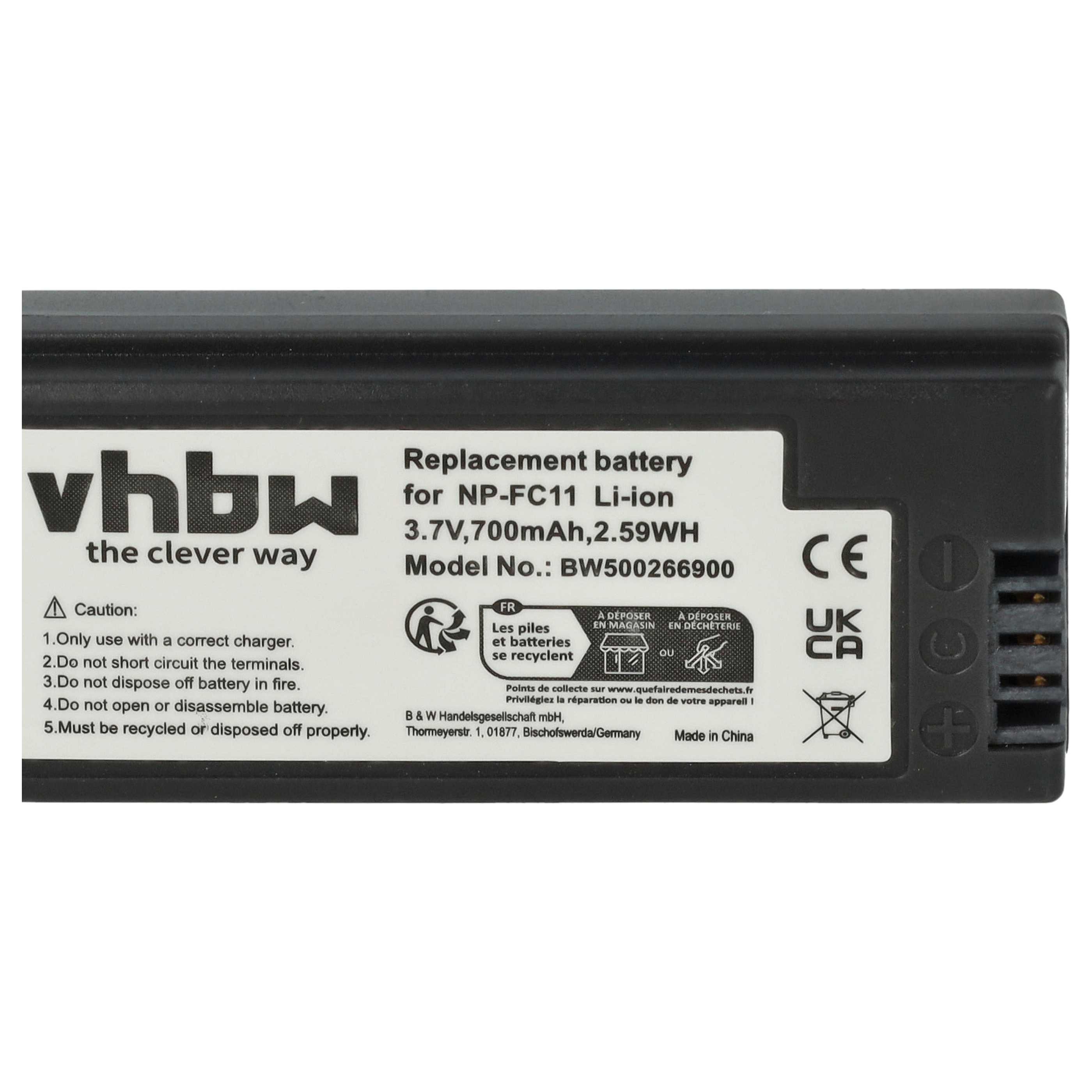 vhbw Batterie rechargeable remplace Sony NP-FC10, NP-FC11 pour appareil photo, appareil numérique (Li-ion; 700mAh; 3,6V)