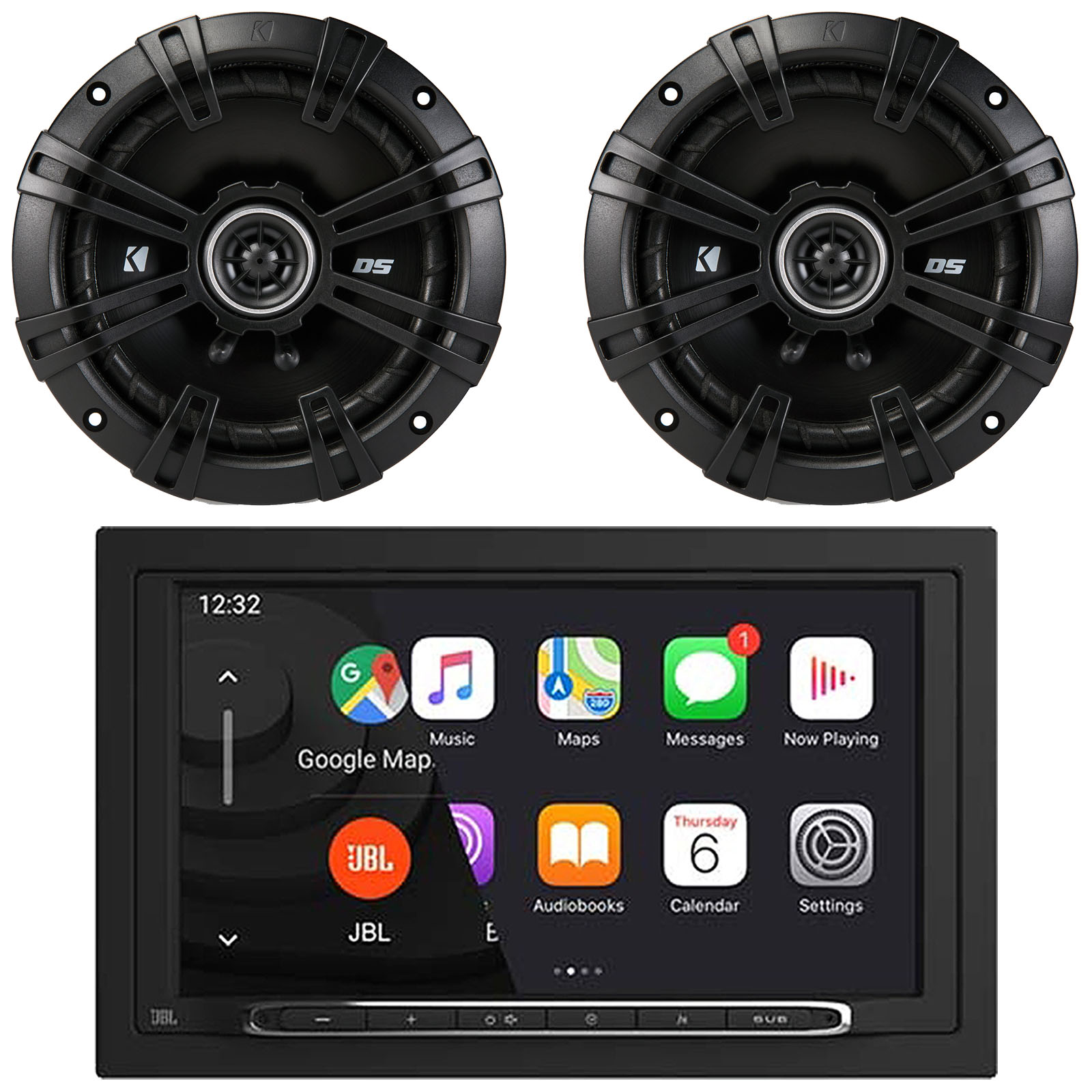 JBL Legend 700 7” Touchscreen Display Double-DIN Mechless Bluetooth AM/FM Receiver W/Wireless Apple CarPlay & Android Auto, 2x Kicker 43DSC6504 6.5" 240W Max Power 2-Way Coaxial Car Audio Speakers
