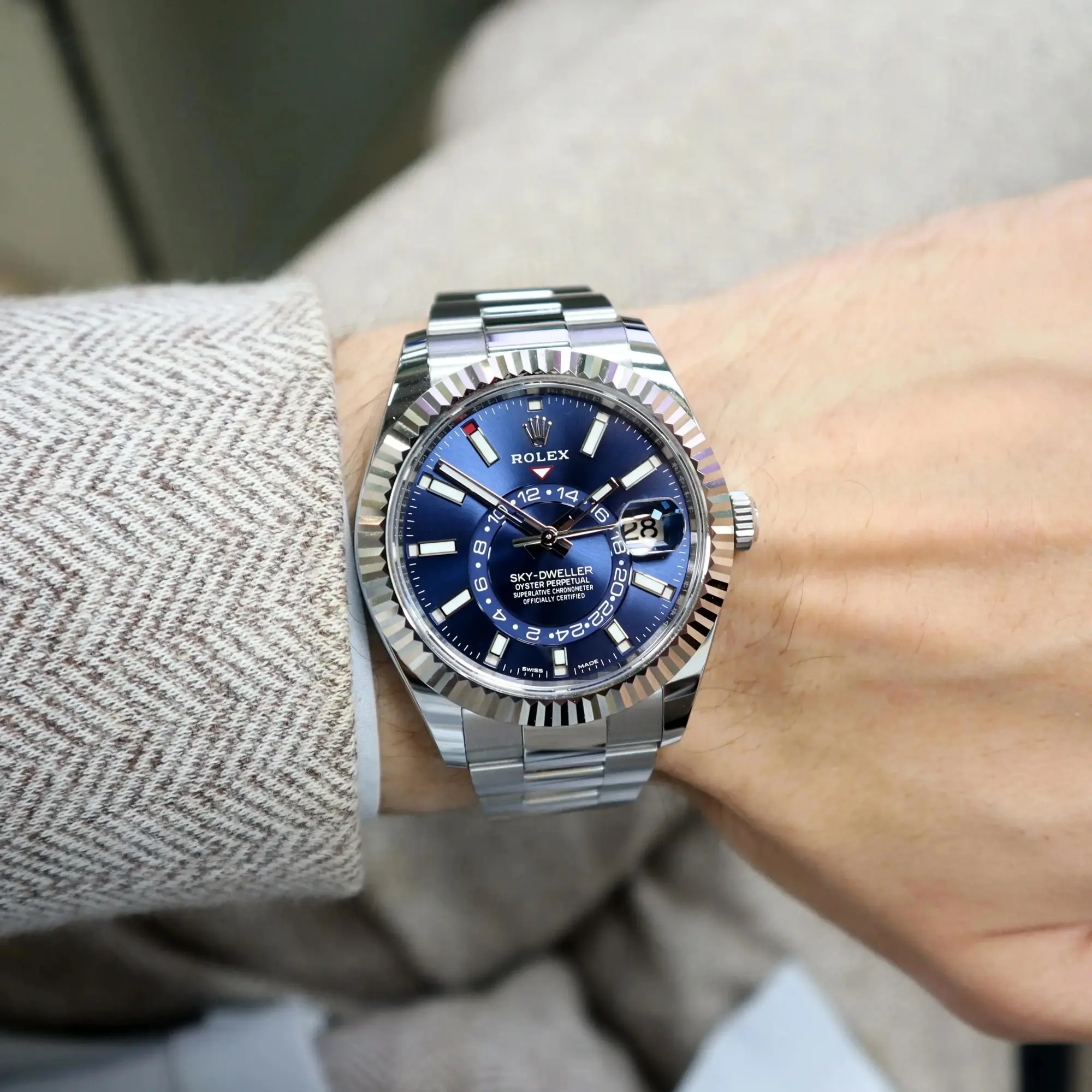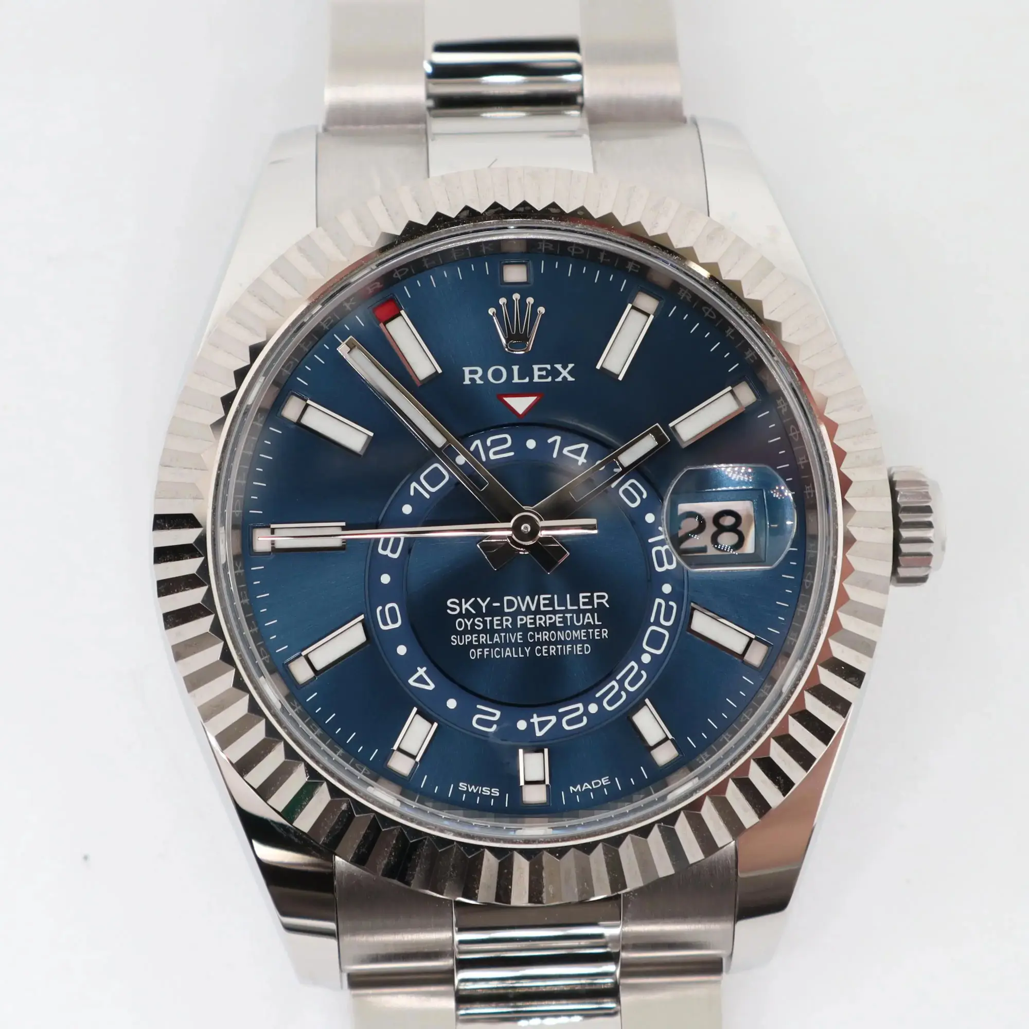 2020s Mint Rolex 326934 Sky-Dweller 42mm Steel 18K White Gold Blue Dial Watch