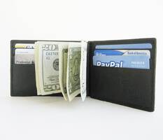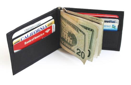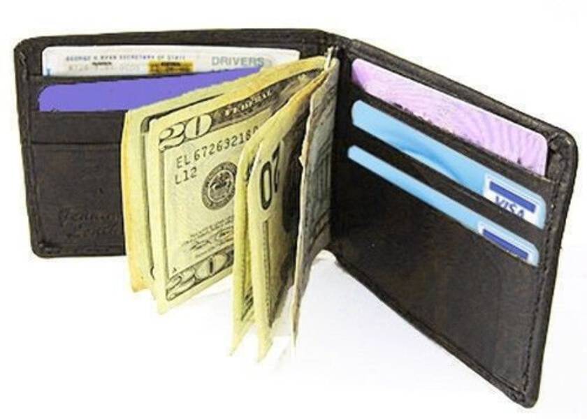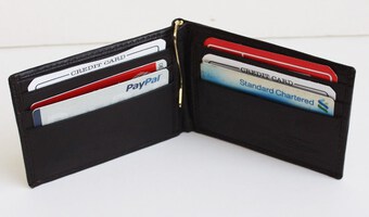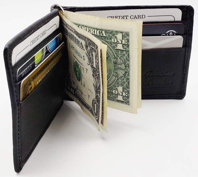 Inside Detail: Credit cards Insert, Window picture ID, Metal Money Clip Holder Width: 3 inches (estimated)