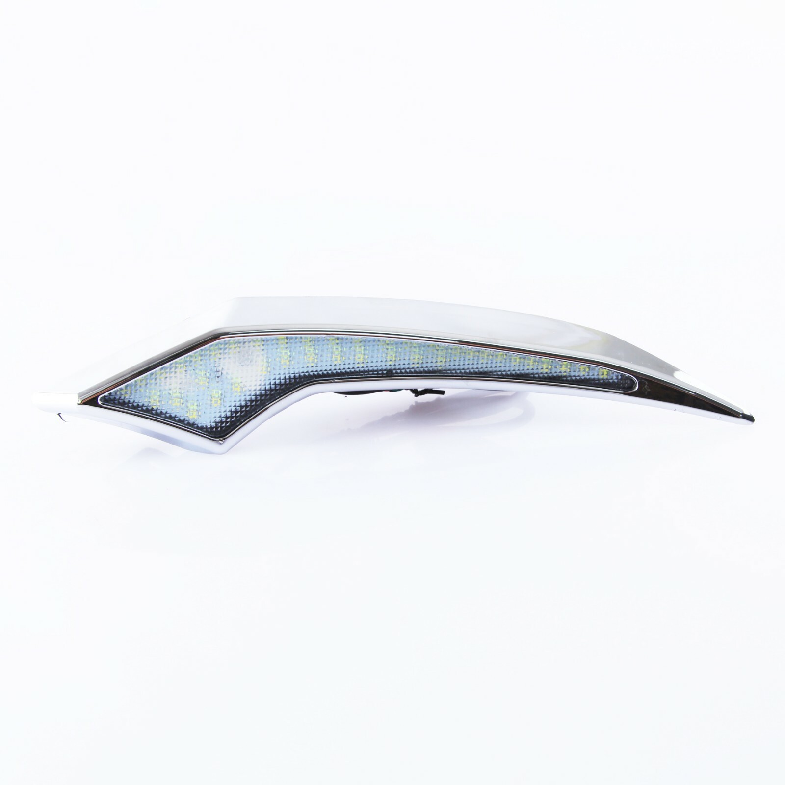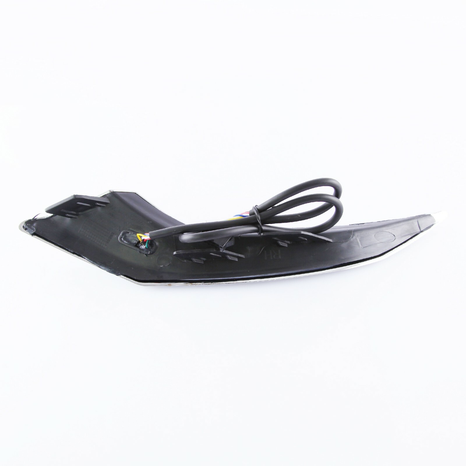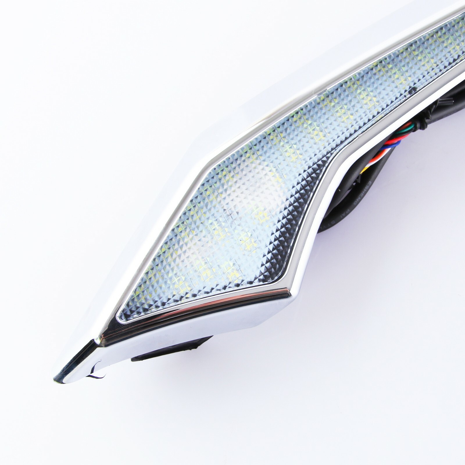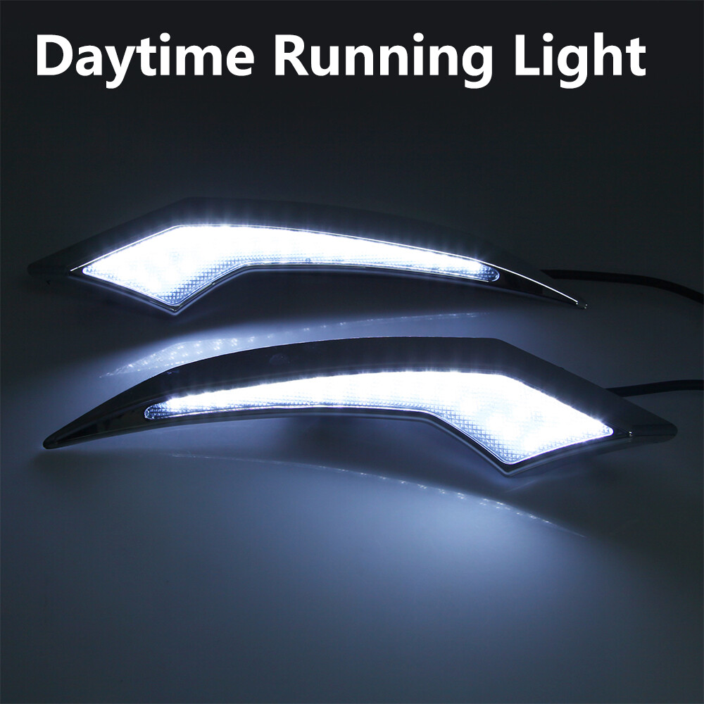Working Voltage: DC 12VBrightness: 200lm~300lmMaterial: ABS HousingColor Temperature: 5000K~6500KLight Color: White (Flow back and forth and then stabilize the white light) + Yellow (Turn Signal) & Ice Blue(Headlight On)