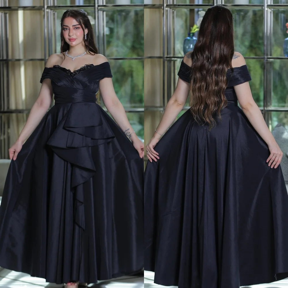 Satin Beading Pleat Quinceanera A-line Off-the-shoulder Gown Long DressesEvening