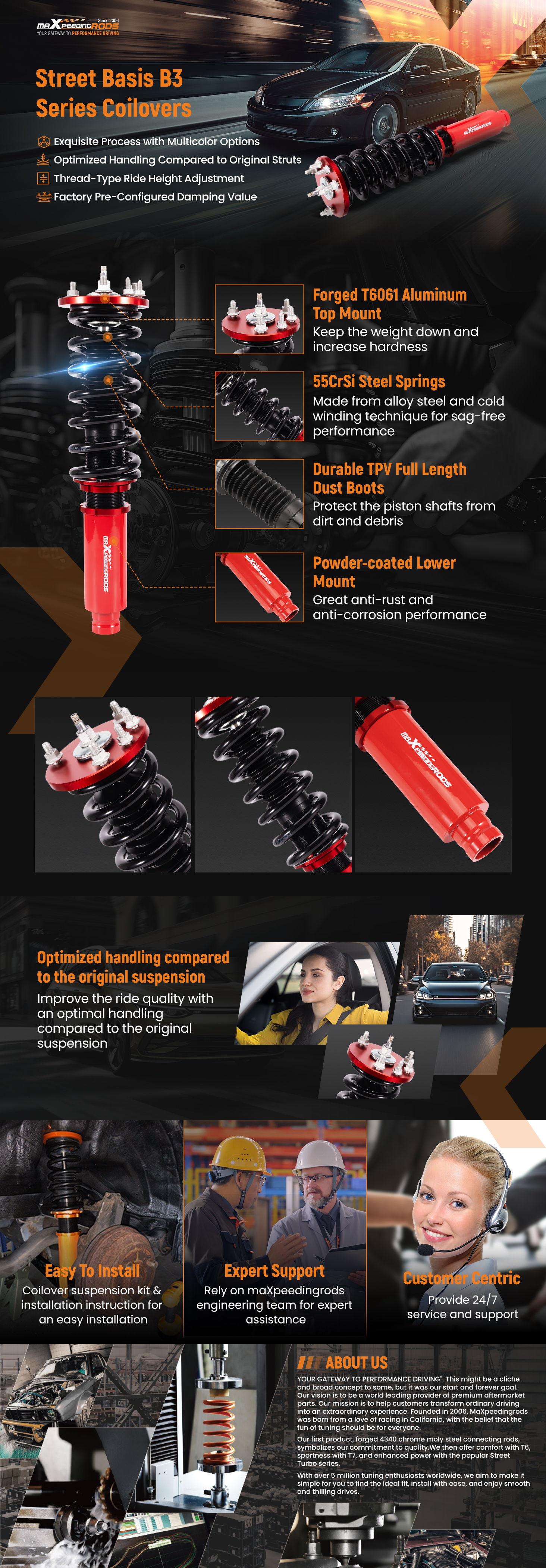 1. Höhenverstellung von 25-75 mm (je nach Fahrzeugmodell) für einen niedrigeren Schwerpunkt und eine aggressivere Optik