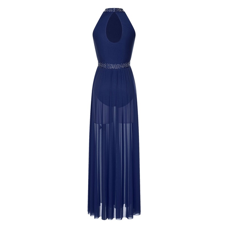 Sleeveless dance dress for women, keyhole back and mock neck with press buttons for easy wearing and taking off.