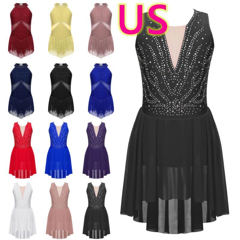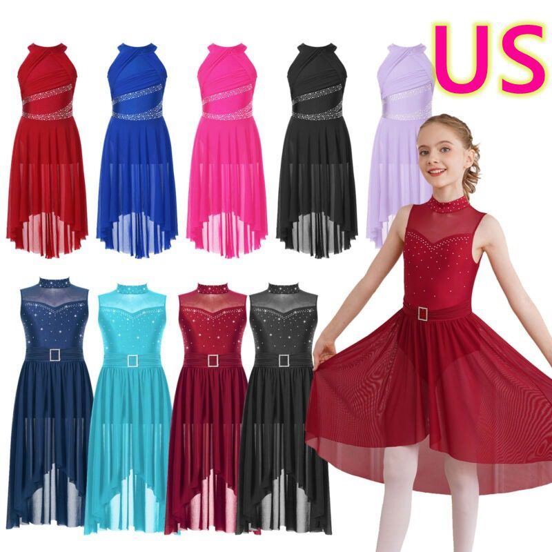 The neckline and waist of the dance dress are adorned with sparkly rhinestones to brighten up any performance.