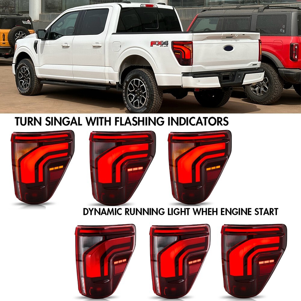 Red Full LED Tail Lights For Ford F-150 F150 XL STX 2021-2023 Rear Lamps Pair