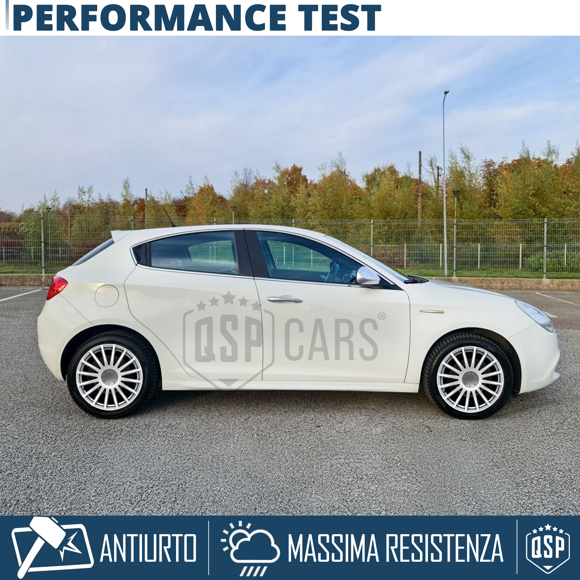 Pensate e Testate da oltre 10 anni per l'Esposizione agli Agenti Atmosferici, caldo, freddo (da - 28° a + 45°) e Detriti di Percorrenza che Incombono sulla Ruota della propria auto.