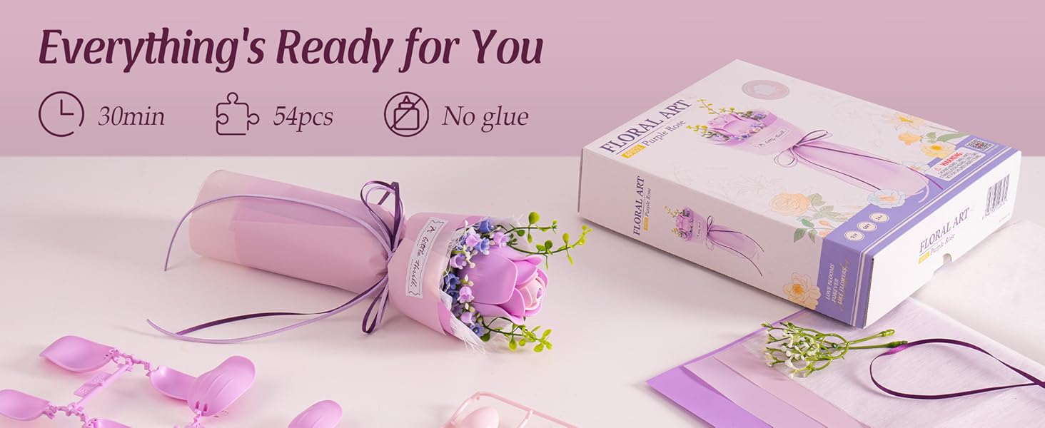 【Romantic 3D Flower Puzzle】Designed in a French style, the ROBOTIME AF021 flower model kit radiates a romantic atmosphere, with the light purple complementing the cream-white beautifully