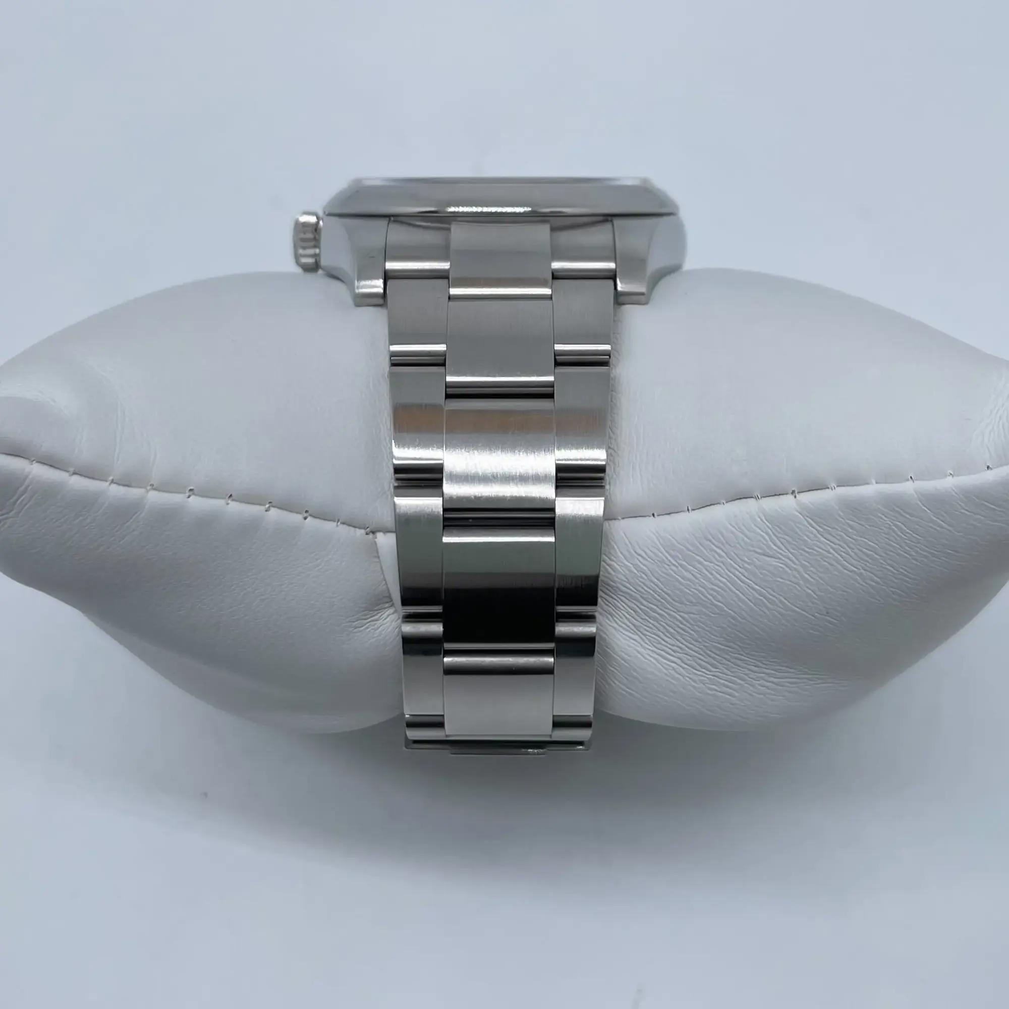Operating a Chronograph requires using the pushers on the side of the case. The top pusher is used to start and stop the chronograph hand while the one at the bottom is used to reset it. Once the top pusher is pressed, the hand will run continuously, which you can track using the accompanying sub-dial. In order to reset the chronograph, it has to be stopped first. Otherwise the button will do nothing when pressed.