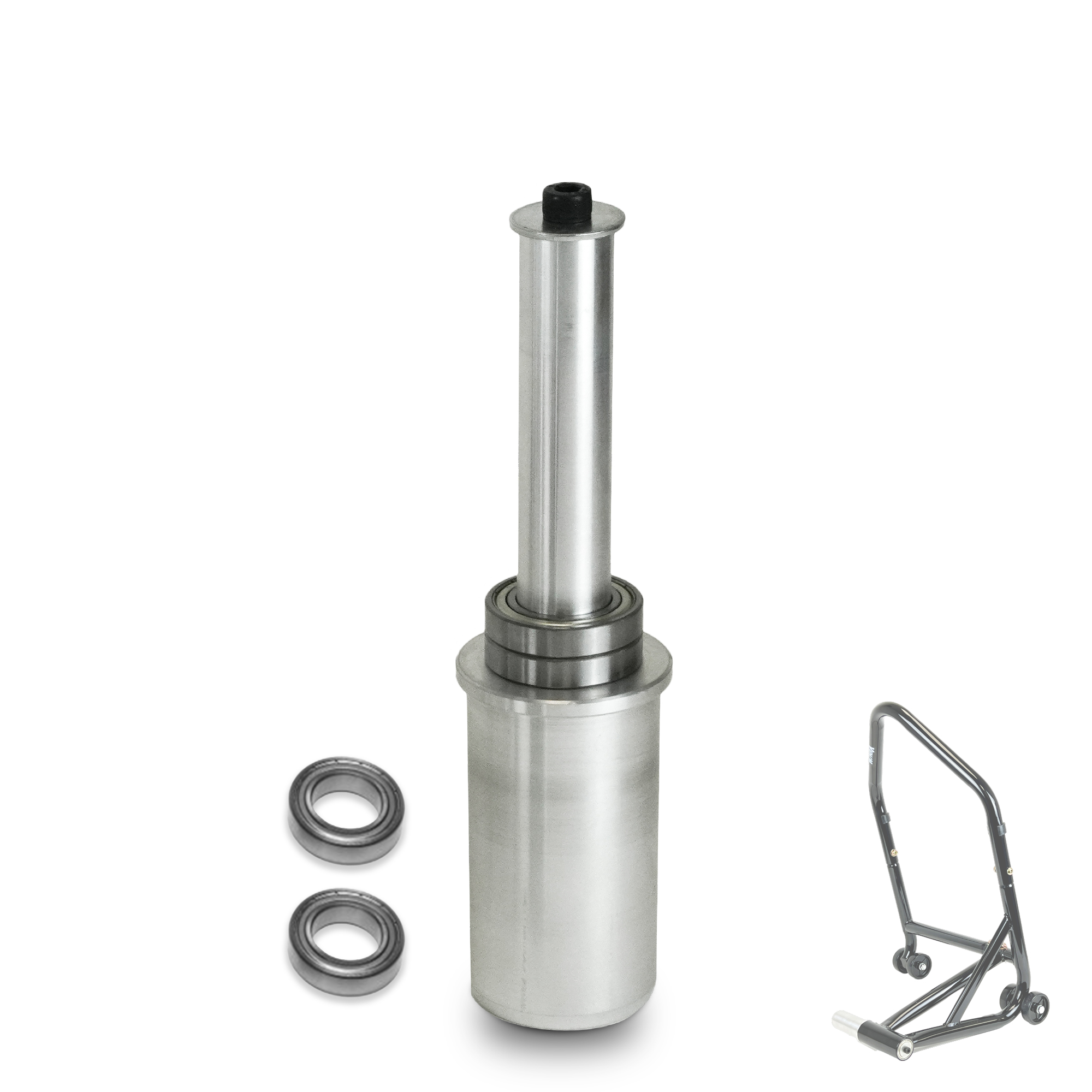 - [EASY PIN SETUP, EFFORTLESS LIFT] - Say goodbye to complex assembly with Venom's motorcycle rear stand pin adapter. Assemble our single-sided swingarm stand in under five minutes, and effortlessly lift your bike in seconds. Simply insert your chosen pin into the frame handle, push the pin through the bearings, and secure it with a washer and bolt. Each motorcycle stand lifts pin features two bearings, allowing the wheel to spin when your bike is lifted.