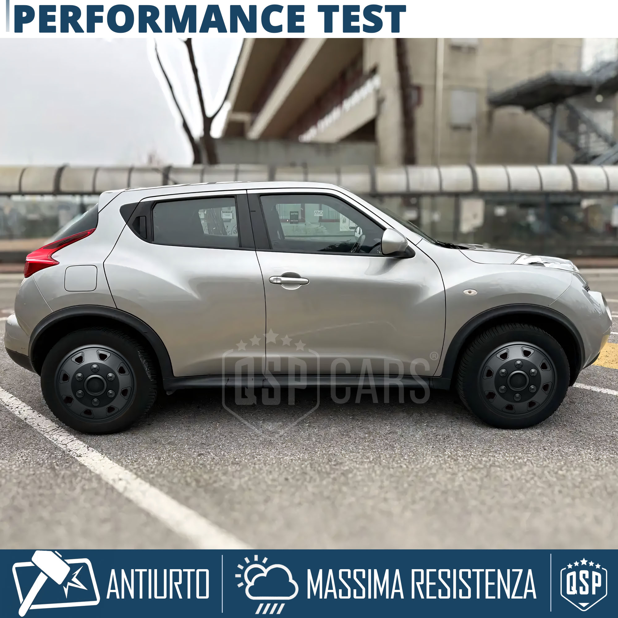 Pensate e Testate da oltre 10 anni per l'Esposizione agli Agenti Atmosferici, caldo, freddo (da - 28° a + 45°) e Detriti di Percorrenza che Incombono sulla Ruota della propria auto.