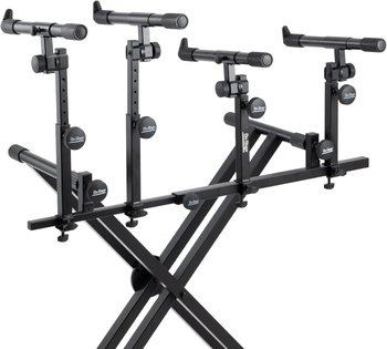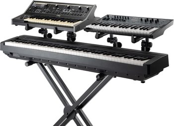 Our KSA8500 Deluxe Keyboard Tier features two sets of support arms to support additional keyboards on your main keyboard stand. Each pair of arms features independently adjustable height, tilt angle, length, and width to hold a variety of keyboards and other devices in optimal playing position. Compatible with any 1" square-tube or 30 mm round-tube stand, as well as our Folding-Z stands, our Deluxe Keyboard Tier is a versatile choice for second- or second-and-third-tier customization.