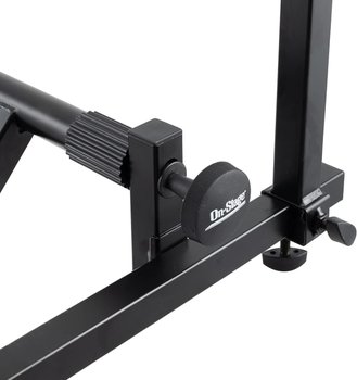 Beyond versatile, the transformative On-Stage KSA8500 boasts 2 sets of fully and independently adjustable arms for the ultimate in 2nd tier -- or even 2nd and 3rd tier -- customization. Compatible with any 1" square or 30mm round-tubed stand, as well as On-Stage Z stands, each of the KSA8500's support arms feature an independent 10-degree increment posi-lok adjustment for height, angle, depth and width, providing 43.5" of total width distributed over a 2nd or 2nd and 3rd tier configuration. The telescoping stabilizer bar accommodates keyboard stands up to 32" in width, while non-slip rubber end caps protect an almost limitless array of keys, laptops, mixers and more.