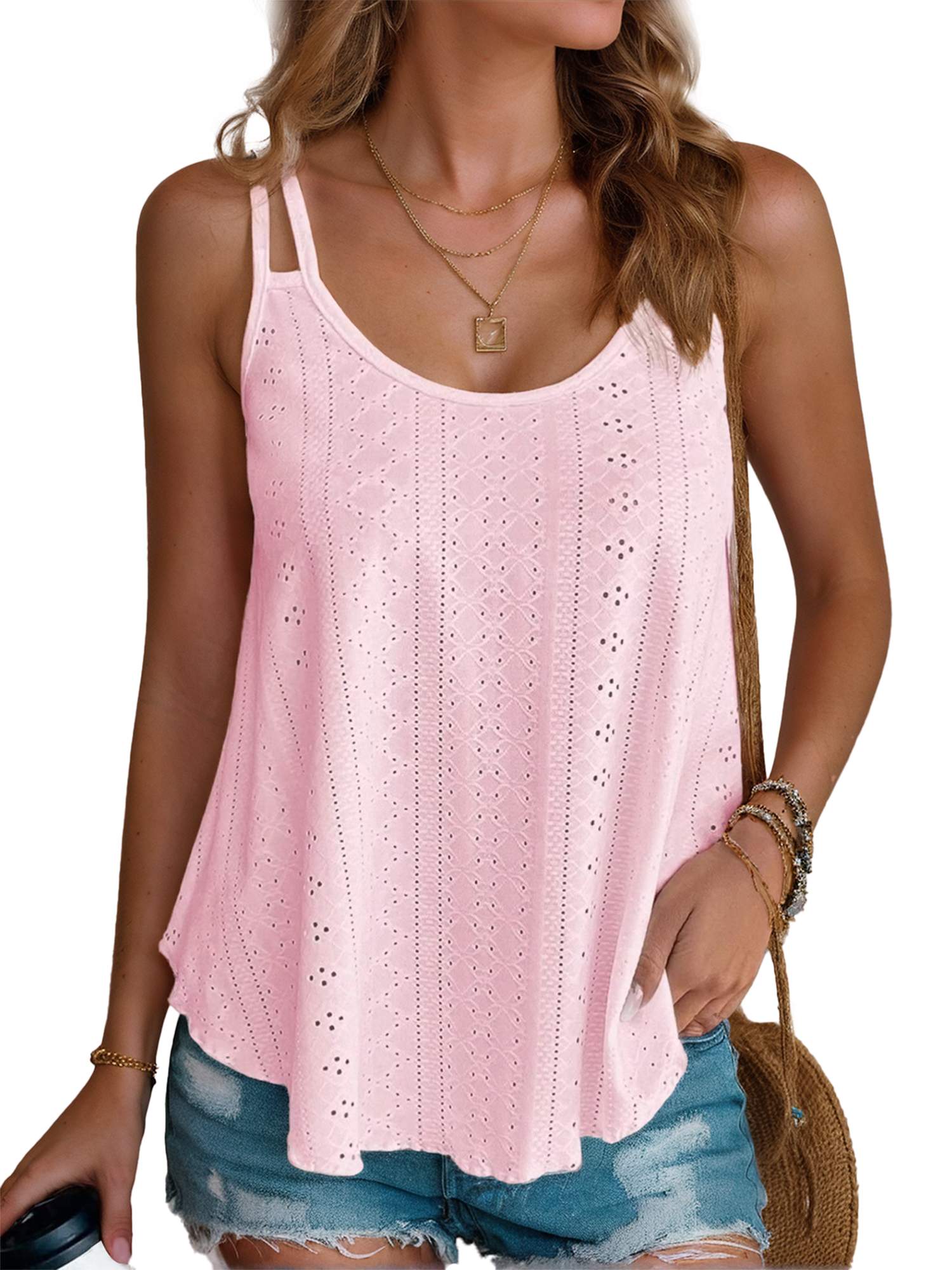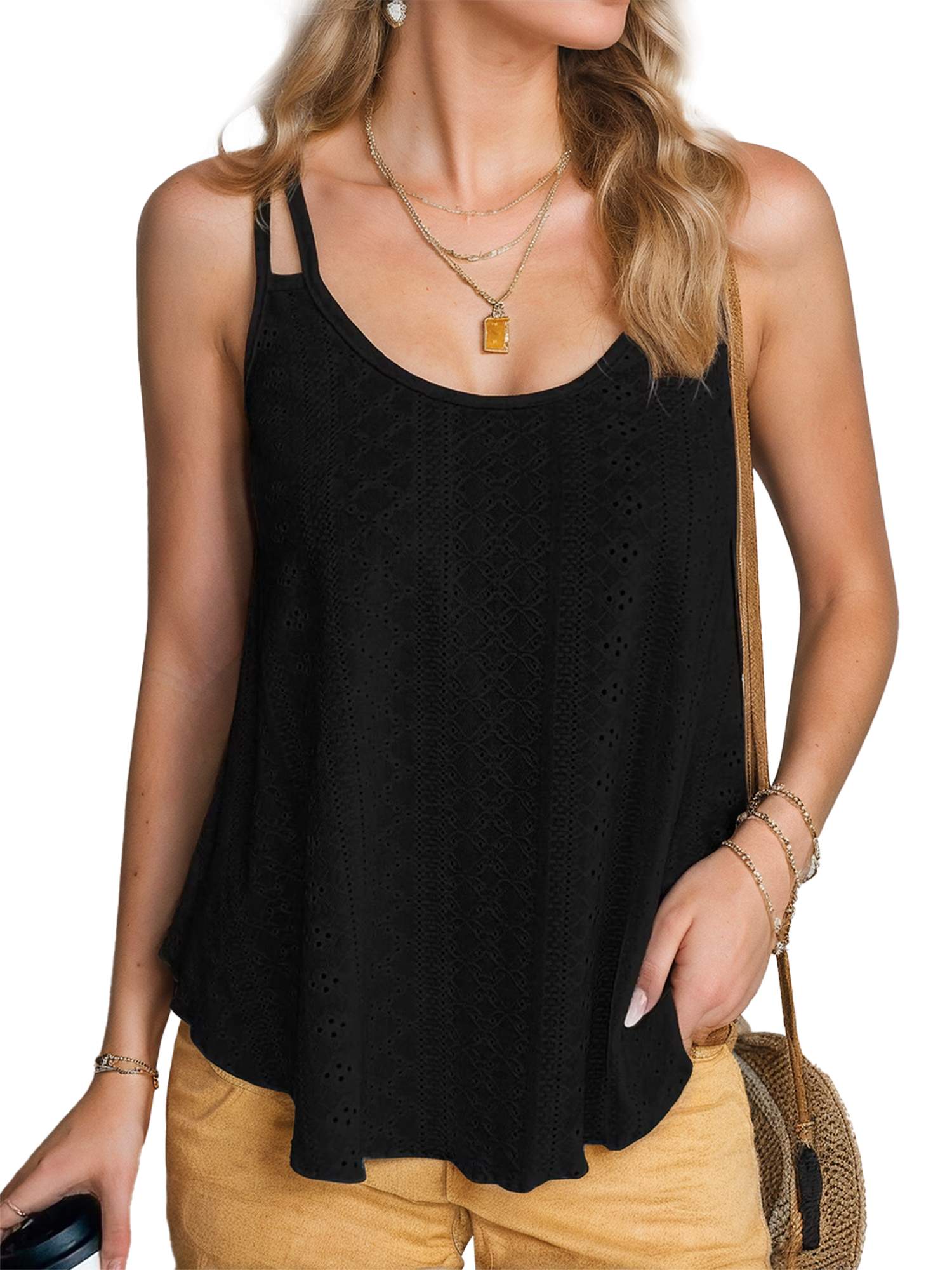 Womens fashion clothes sleeveless tank tops with flowy hem,eyelet embroidery spaghetti strap shirts,loose fit strappy tank top.