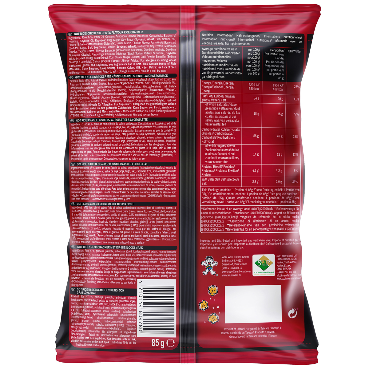 Los "quieren las patatas fritas de pollo y chivers" son galletas de arroz crujientes, que están hechas de arroz japonica. Con un sabor abundante de pollo y un toque de chiles picantes, ofrecen una experiencia de bocadillos equilibrada y sabrosa. El embalaje de 85 gramos es práctico para sobre la marcha y es perfecto para un pequeño refresco en el medio. Gracias a su textura crujiente y a la combinación de sabor de picante y abundante, estas galletas de arroz son una excelente opción para los amantes.
