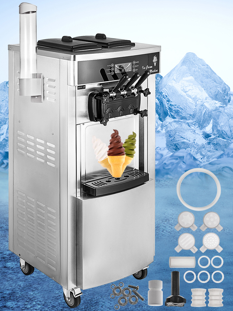 Hier bieten wir Ihnen 3 verschiedene Geschmacksrichtungen (2 einzelne Geschmacksrichtungen und 1 gemischte Geschmacksrichtung), um Ihre Auswahl zu bereichern und die verschiedenen Anforderungen Ihrer Kunden zu erfüllen. Außerdem sind 4 verschiedene Düsen enthalten, mit denen Sie Ihr Eis anders aussehen lassen können als andere, was die Eisherstellung noch interessanter macht.