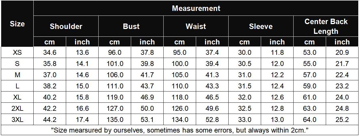 Size: There are 5 sizes (S/M/L/XL/XXL) available for the following listing. please allow 1-2cm differs due to manual measurement, thanks (All measurement in cm and please note 1cm=0.3937inch)
