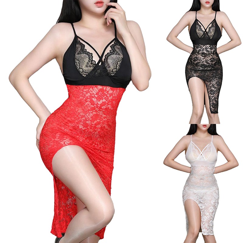 Spaghetti strap, see-through floral lace and satin patchwork design to make you hot and attractive.