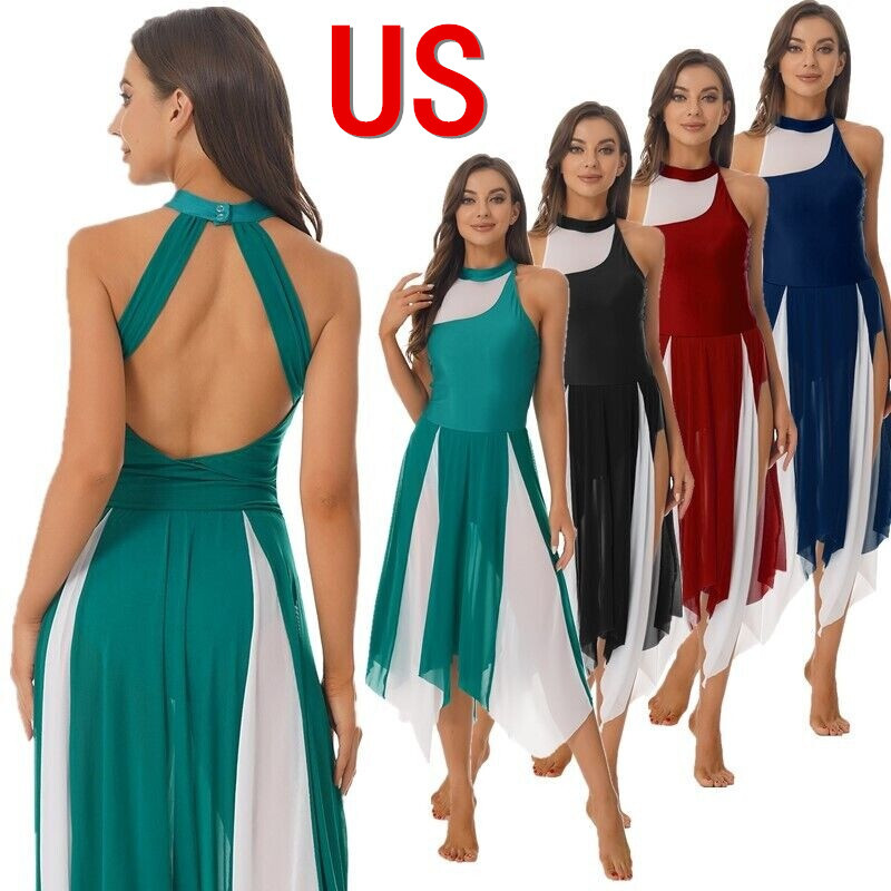 Women’s sleeveless dance dress, modest round neckline, back invisible zipper closure for easy wearing.