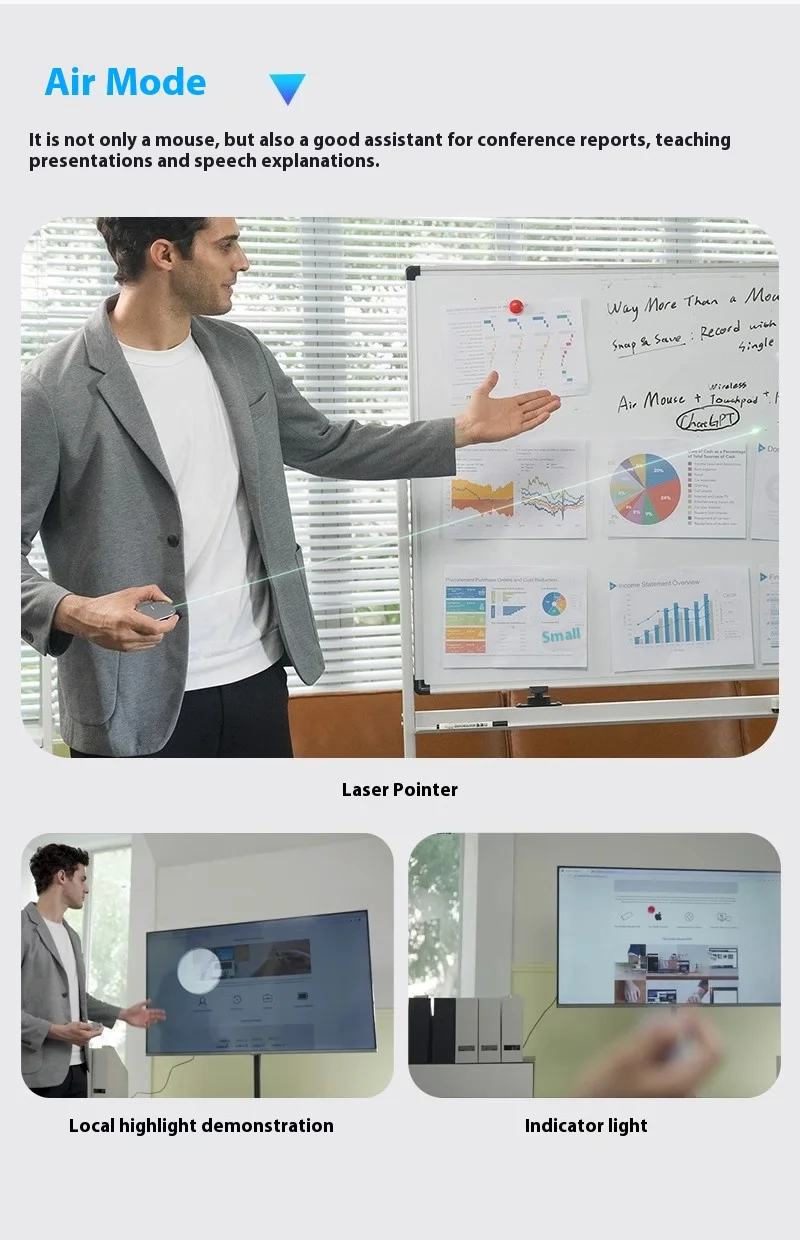 - 【3-in-1 Detachable Air Mouse】The Cheerdots2 Air Mouse combines four powerful tools in one: air mouse, wireless touchpad, presentation clicker, and voice recorder. Its sleek, magnetic detachable design makes it easy to carry, while the ergonomic shape fits comfortably in your hand. Weighing just 70g, it’s perfect for professionals on the go.