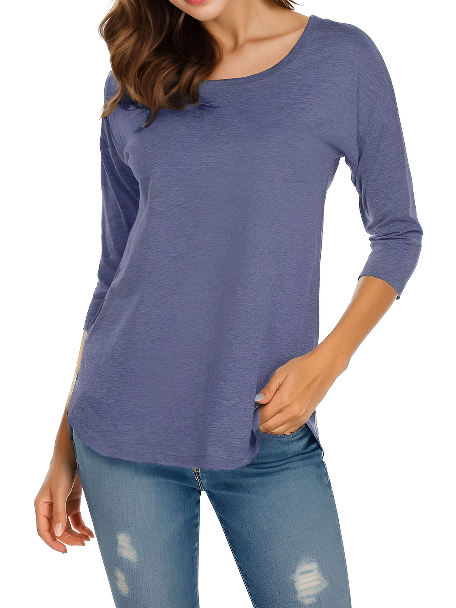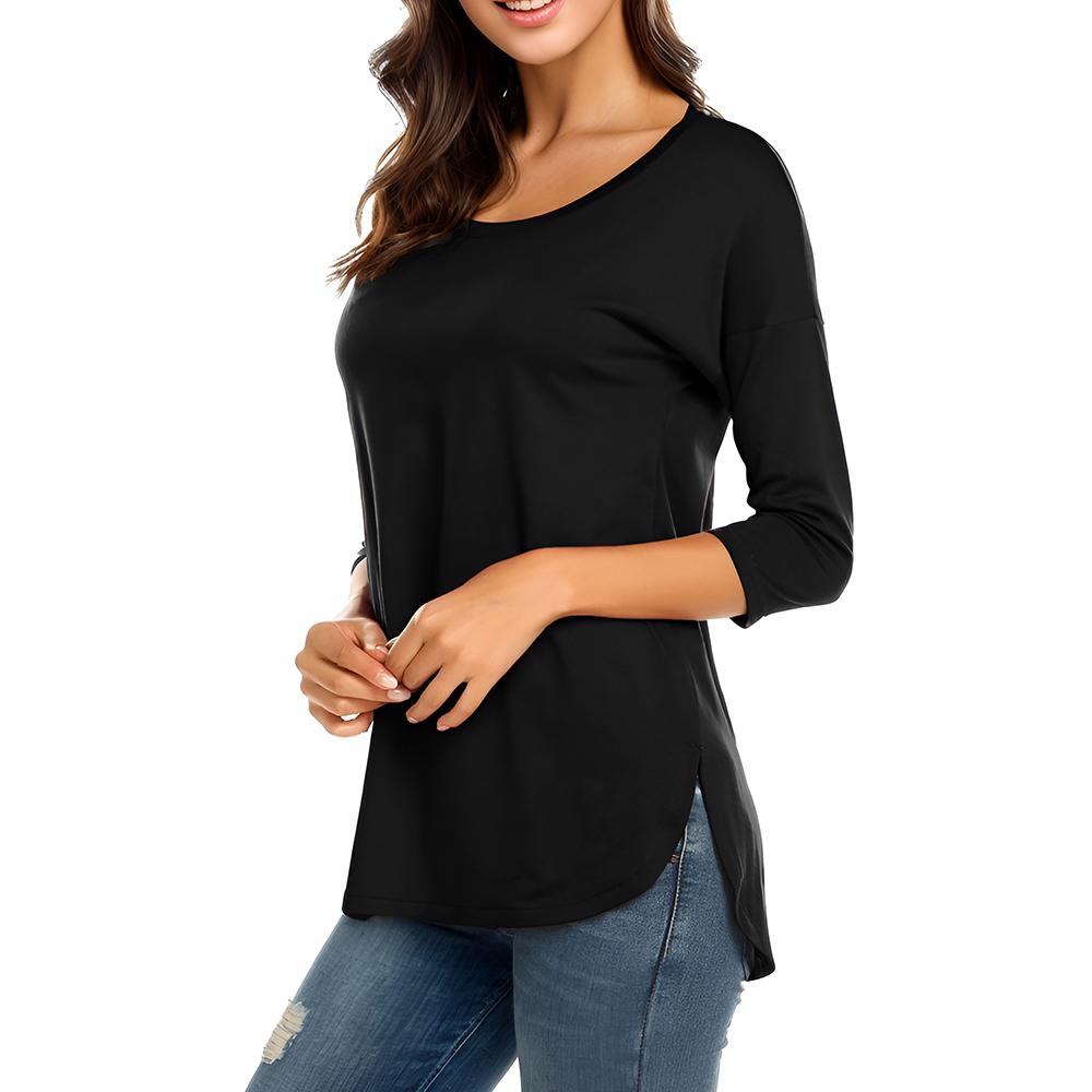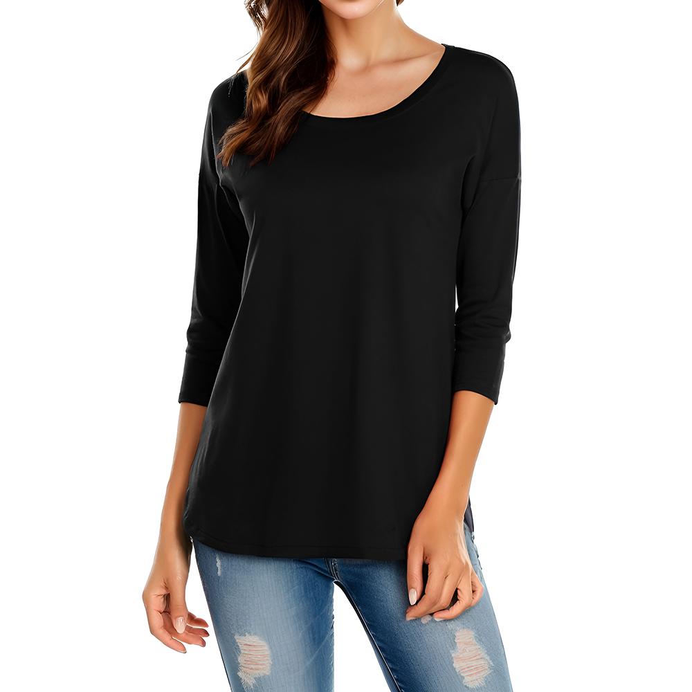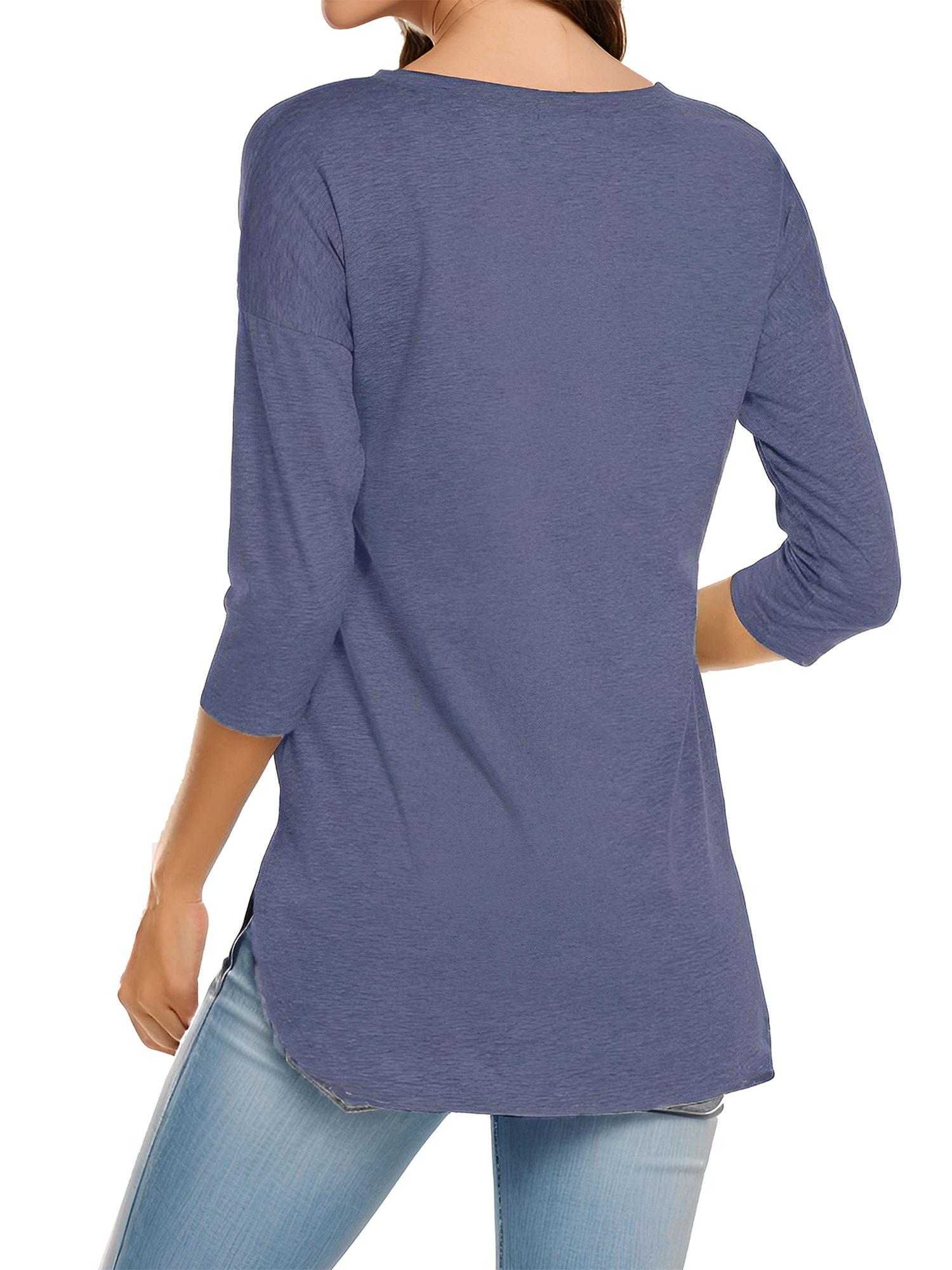 Women's Casual 3/4 Sleeve Loose Tops Round Neck T-Shirt