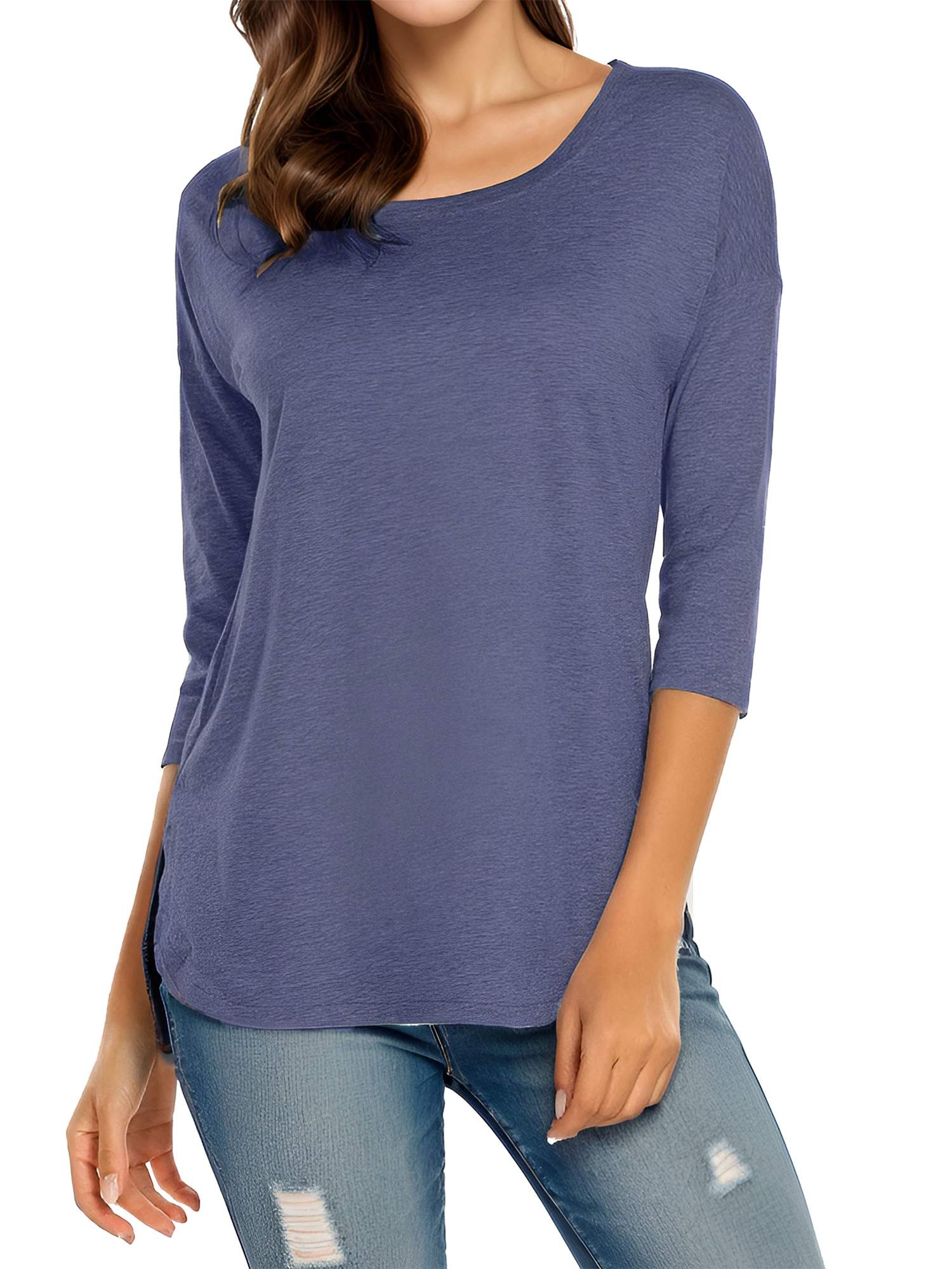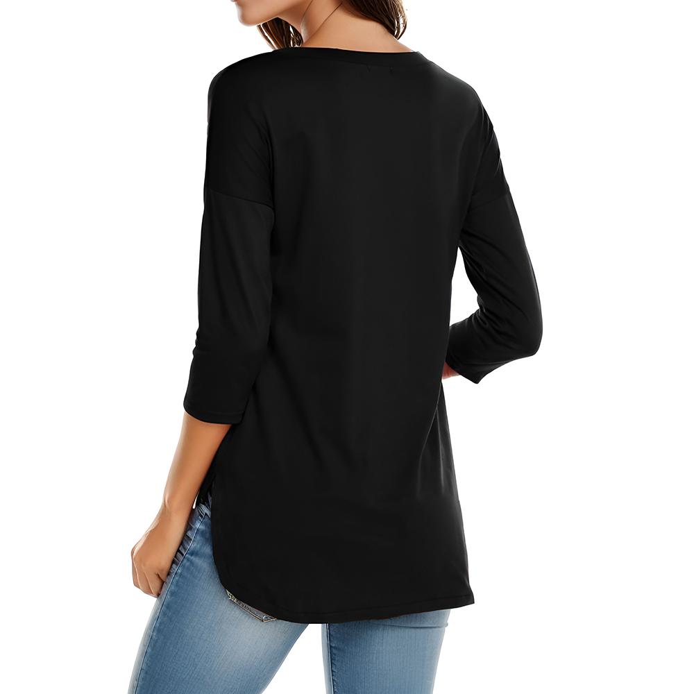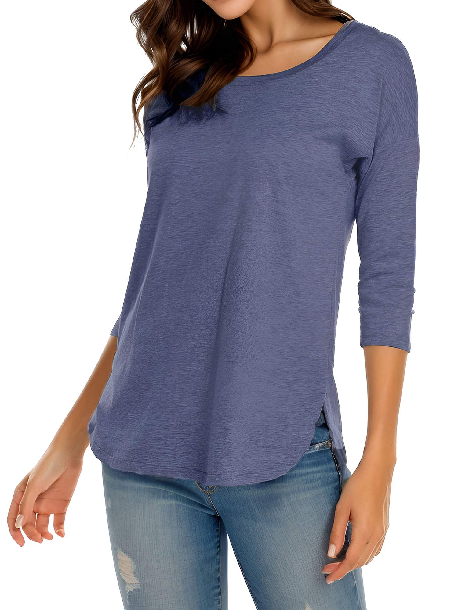 Women's Casual 3/4 Sleeve Loose Tops Round Neck T-Shirt