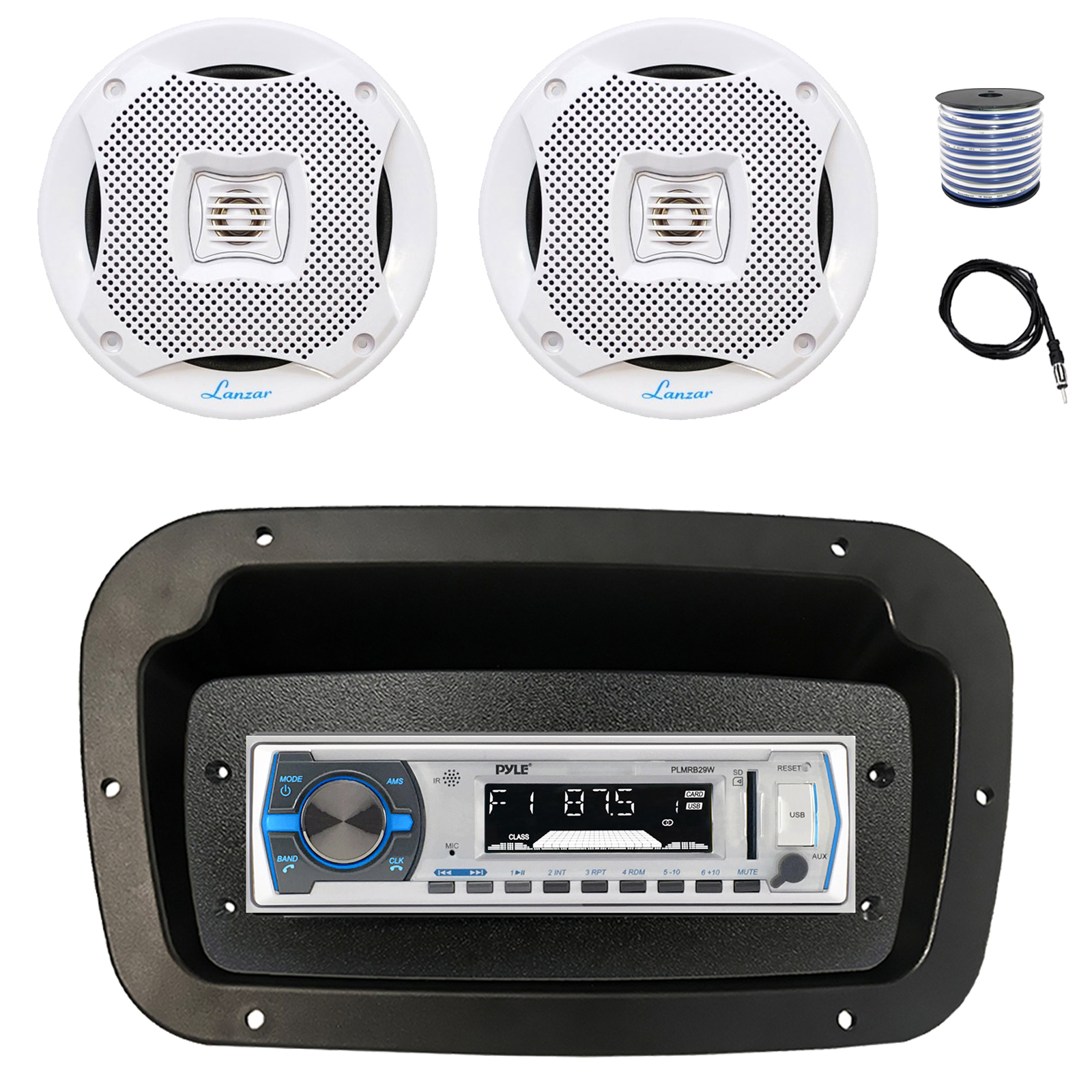 Pyle Marine Radio, Spa Bezel,Adapter, Antenna,Wire, 2x 5.25" 400W White Speakers