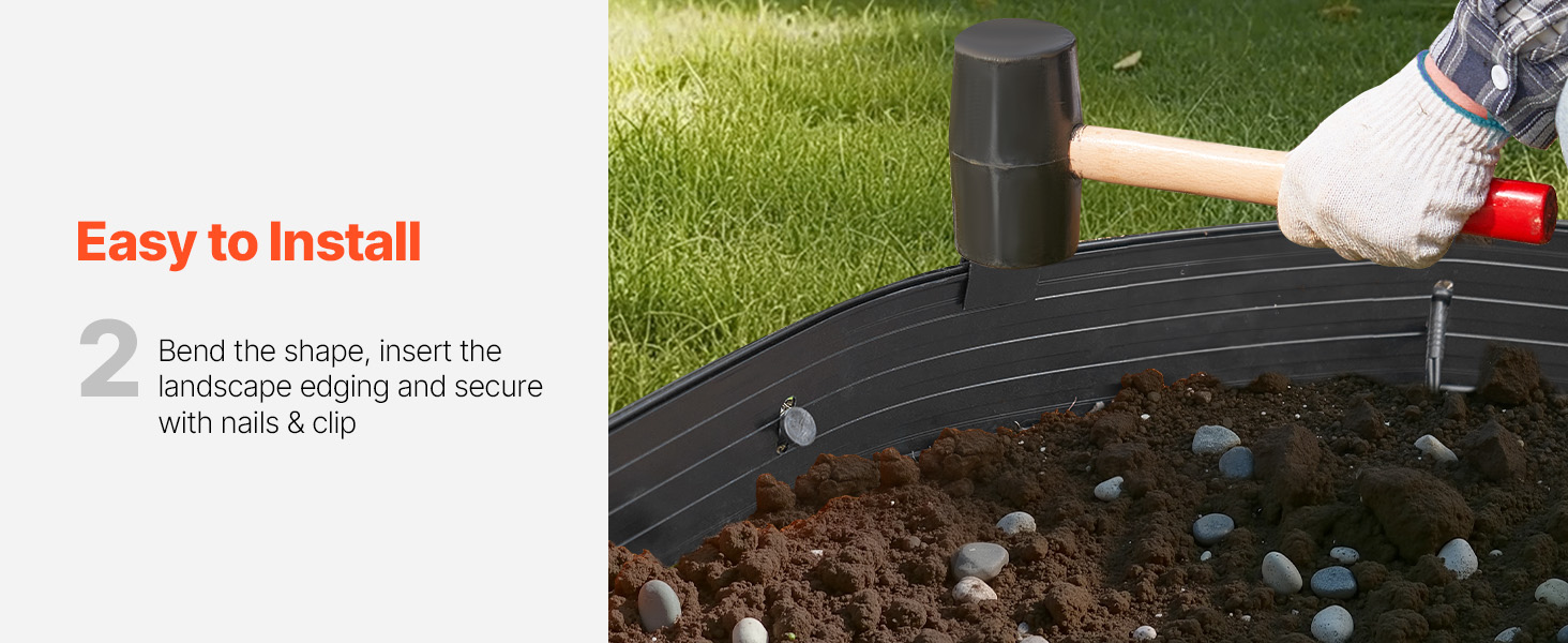 - Simple Installation: Installing your landscape edging is a breeze! Simply secure each piece with the included nails and additional clamps for extra stability. No specialized tools are required for setup.
