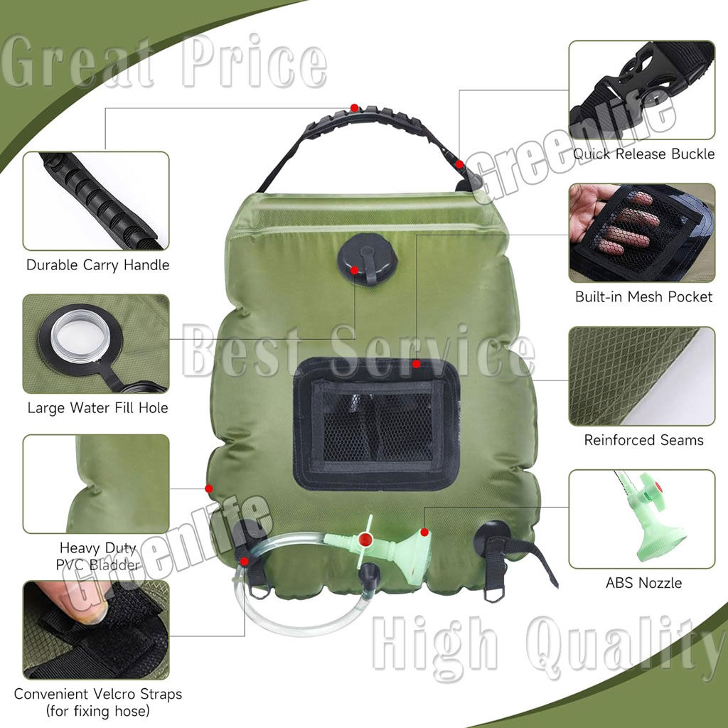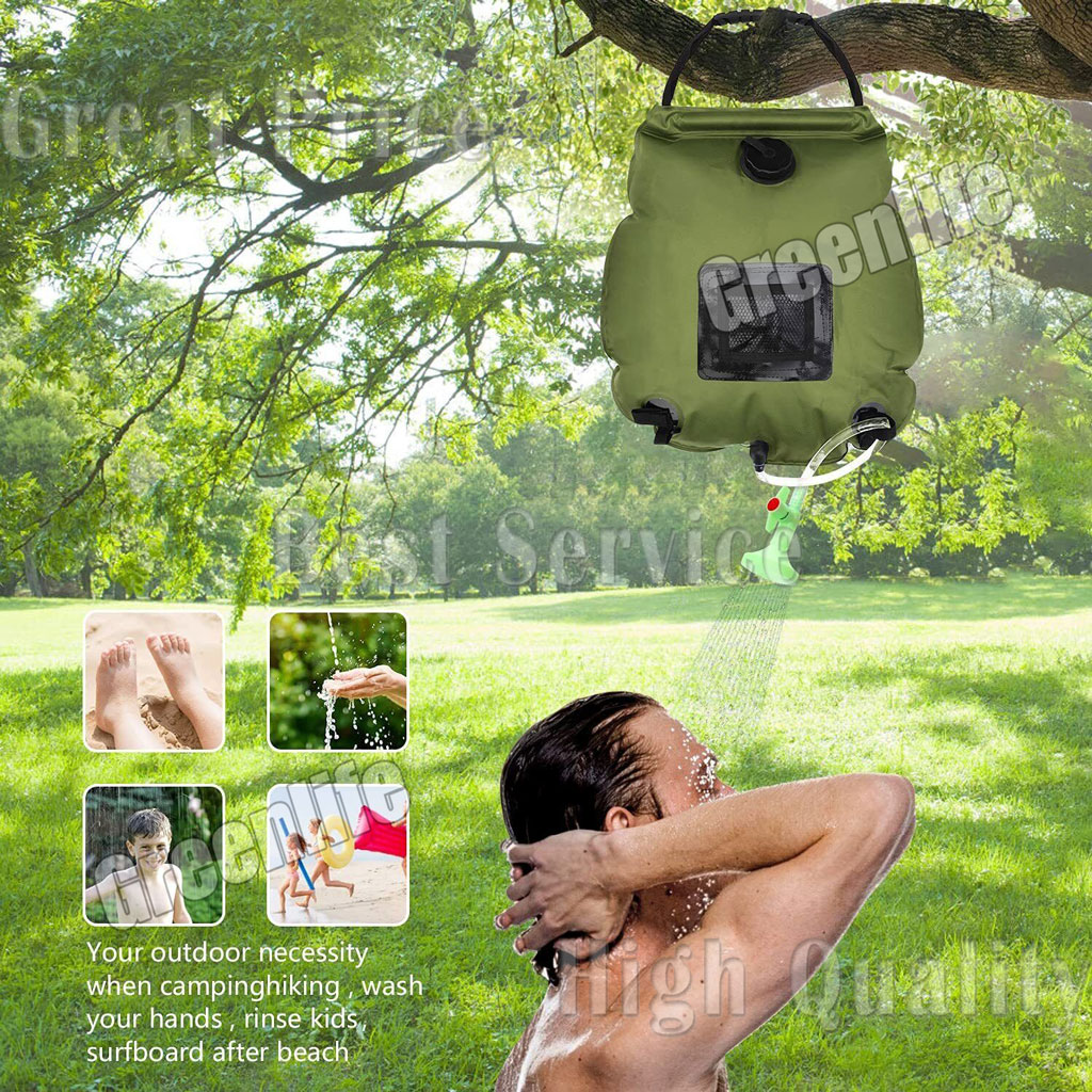 【Suitable for various scenarios】 Camping shower bags can be used for outdoor camping, travel, mountaineering, hiking, backpacking, self driving, fishing or hunting, beach swimming, allowing you to enjoy a refreshing and pleasant shower outdoors. In addition, it can also be used to clean outdoor accessories, help pets take showers, etc.