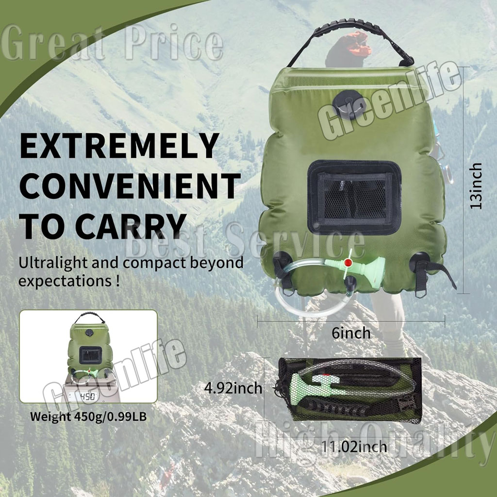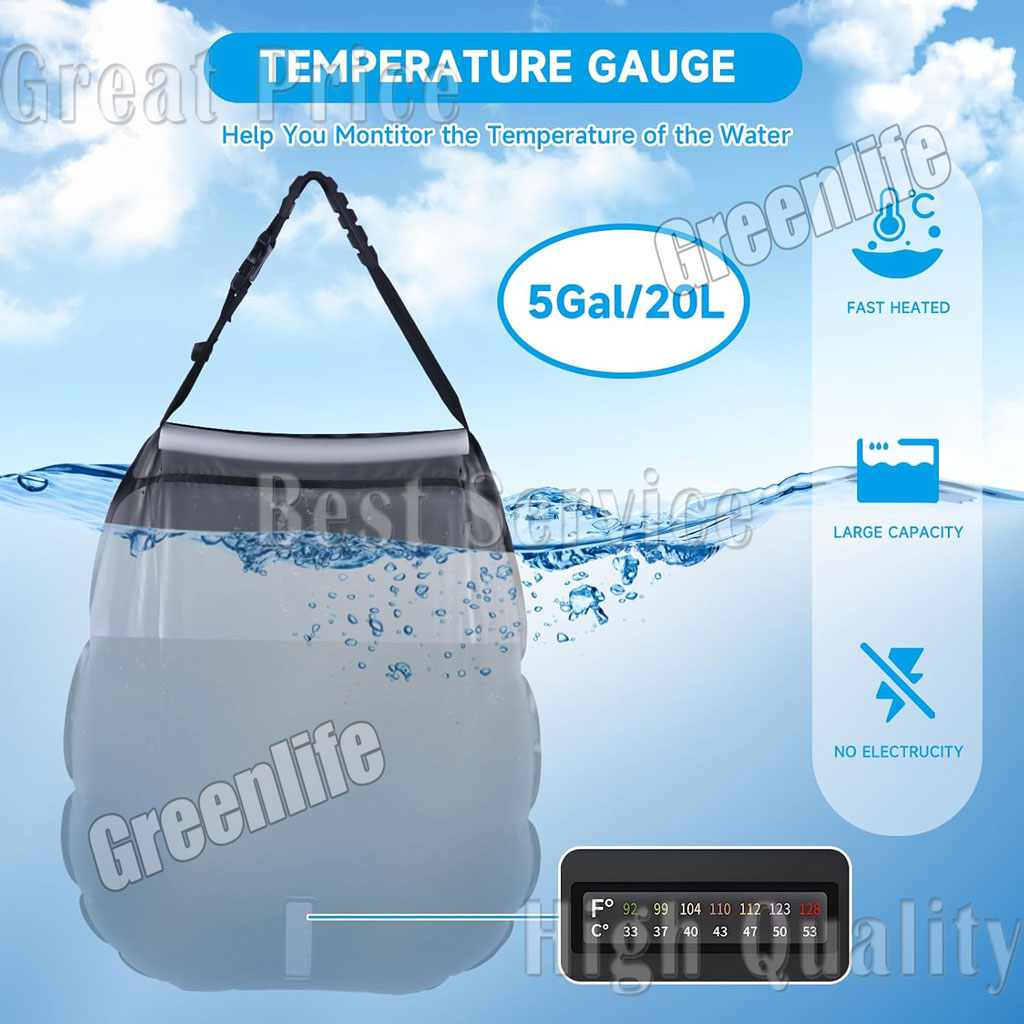 【 Large Capacity Design 】 The solar portable shower bag adopts a large capacity design, reaching 5 gallons/20L, which is enough to shower 2-3 times, allowing you to enjoy a comfortable outdoor shower and experience a better outdoor life.