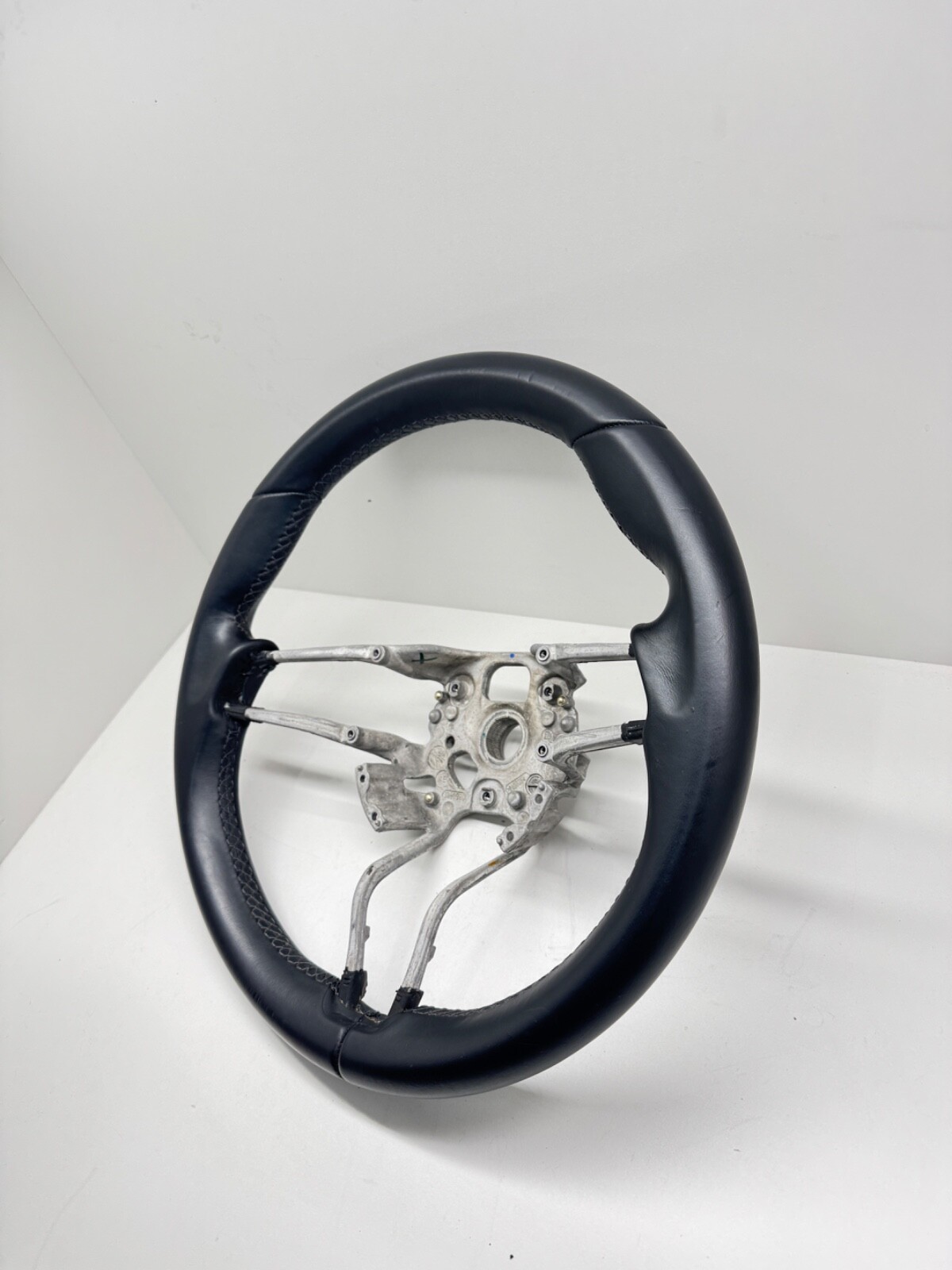 Steering wheel has some leather damage and it is bent.