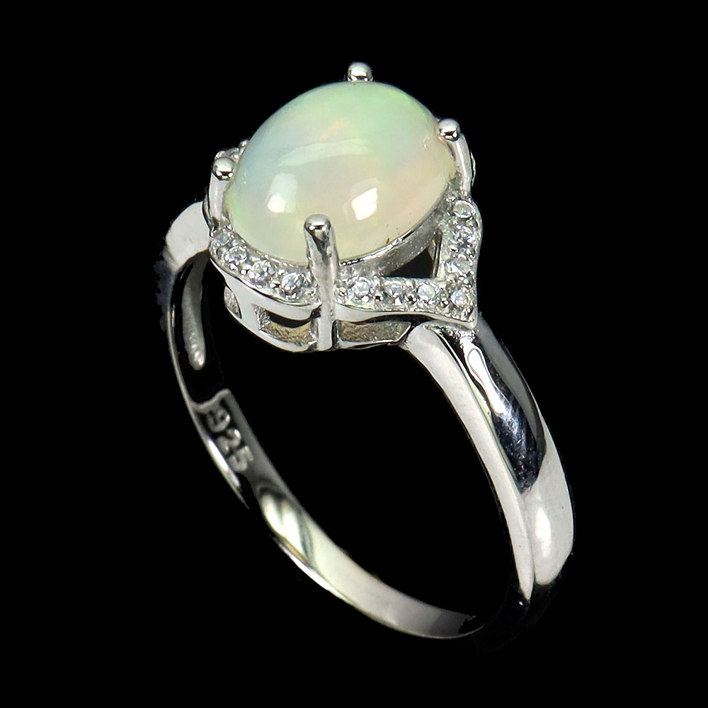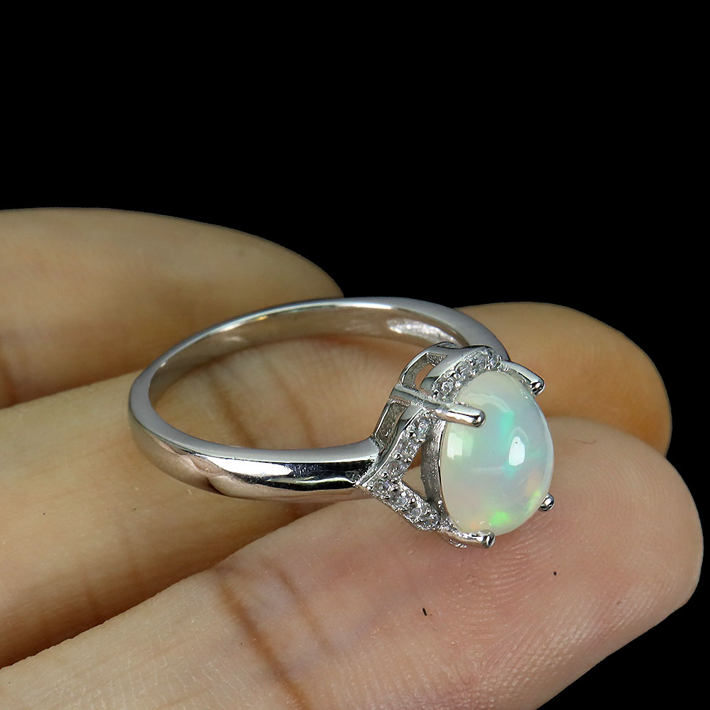 Unheated Oval Fire Opal Rainbow 9x7mm Simulated Cz 925 Sterling Silver Ring 7