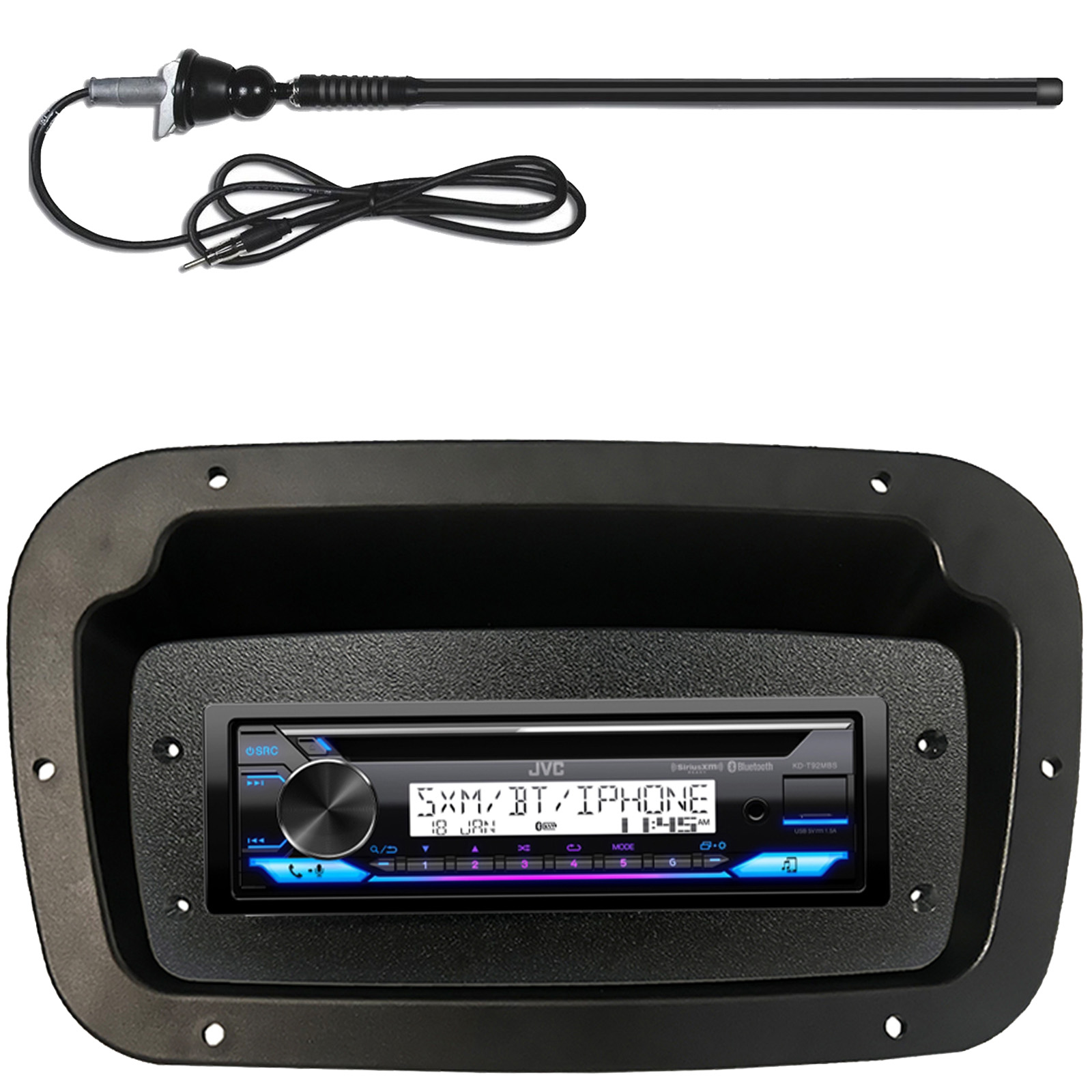 JVC KD-T92MBS Single-DIN Marine Bluetooth USB/AUX CD Player AM/FM Stereo Receiver W/Spa bezel for Single-DIN Radio + Adapter Plate for Single-DIN Cutouts, Black Flexible Long Range Radio Antenna