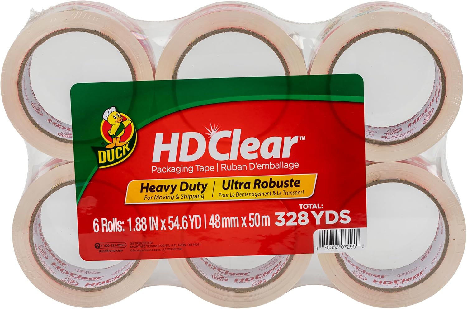 Size: 6-Pack Style: 54.6 Yards/Roll When it’s time to pack up, be sure to choose a durable tape that’s tear- and break-resistant. HD Clear Brand Heavy Duty Packing Tape is designed with a long-lasting acrylic adhesive that keeps your boxes and packages secure during shipping, moving and storage. Plus, it goes on completely clear so you can box up your belongings while keeping your storage space at home or the office looking nice.
