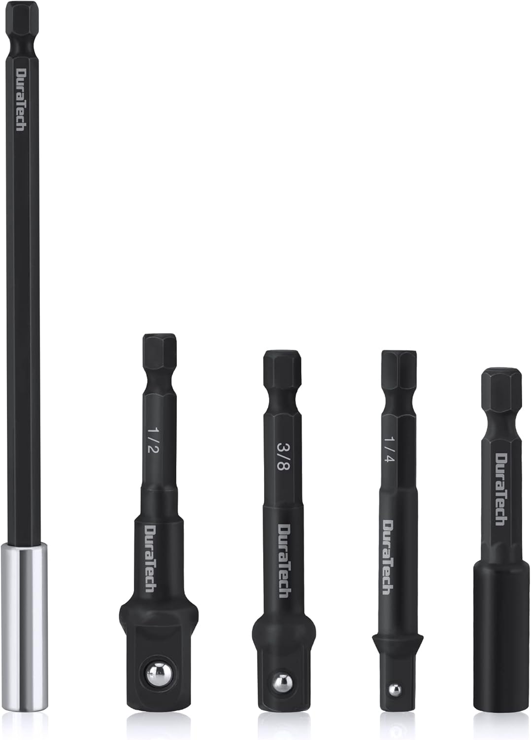 - This premium 5 pcs hex shank bit driver extension set includes 3 pcs adapters- 1/4" 3/8" 1/2", and 2 pcs extension bars,which is designed to meet a variety of needs fexibility