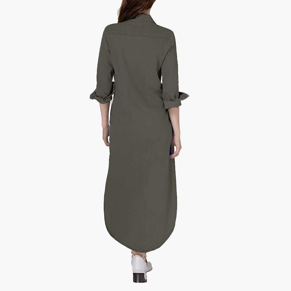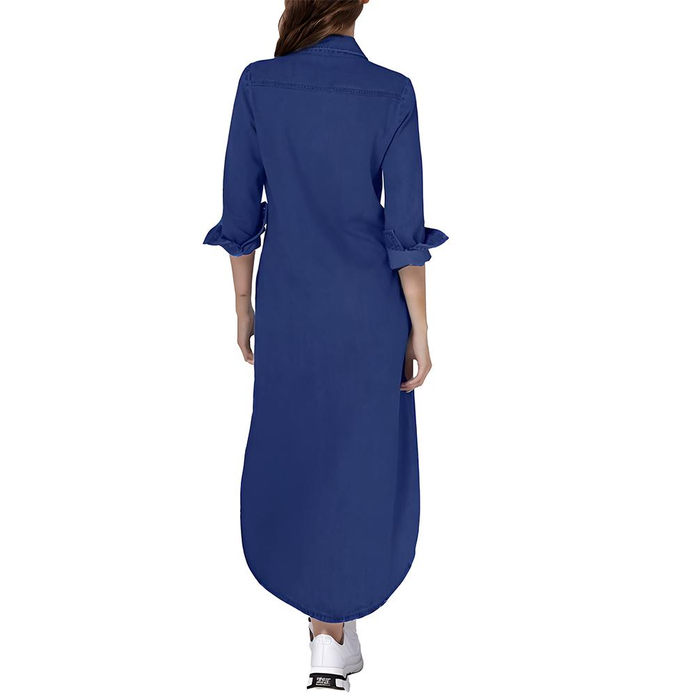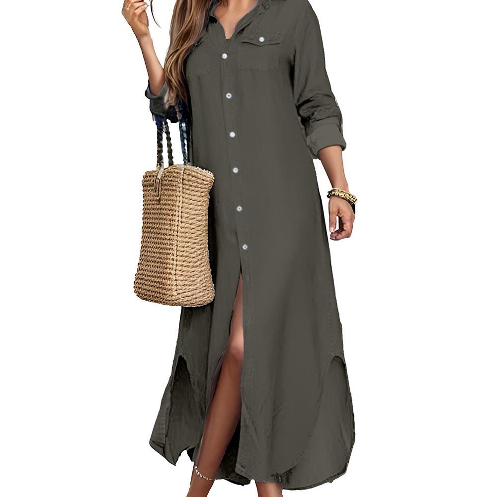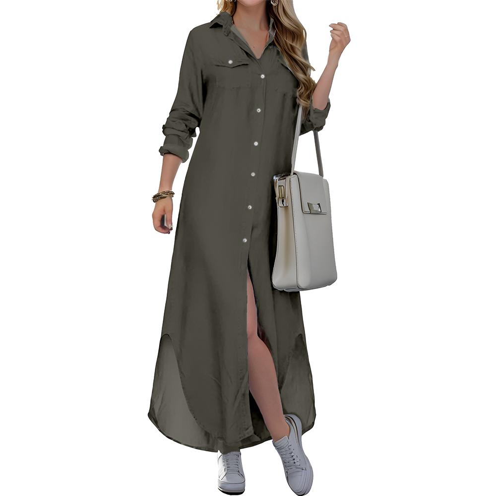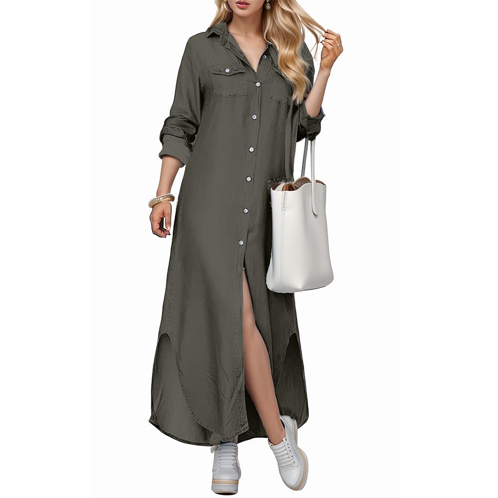 Women's Casual Long Sleeve Button Front Maxi Shirt Dress