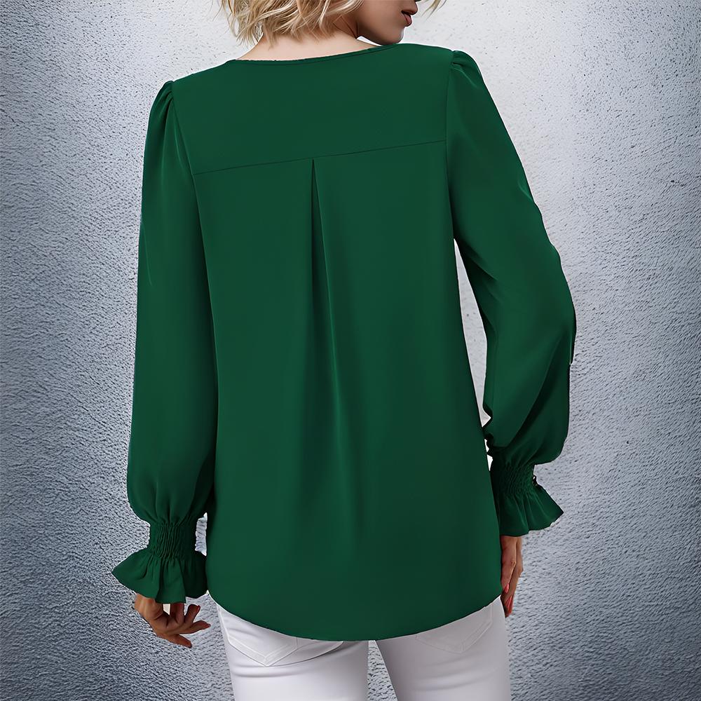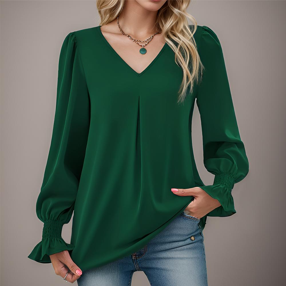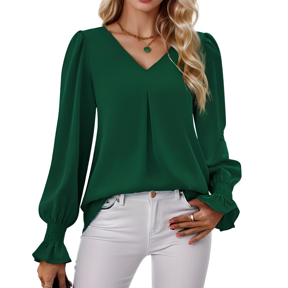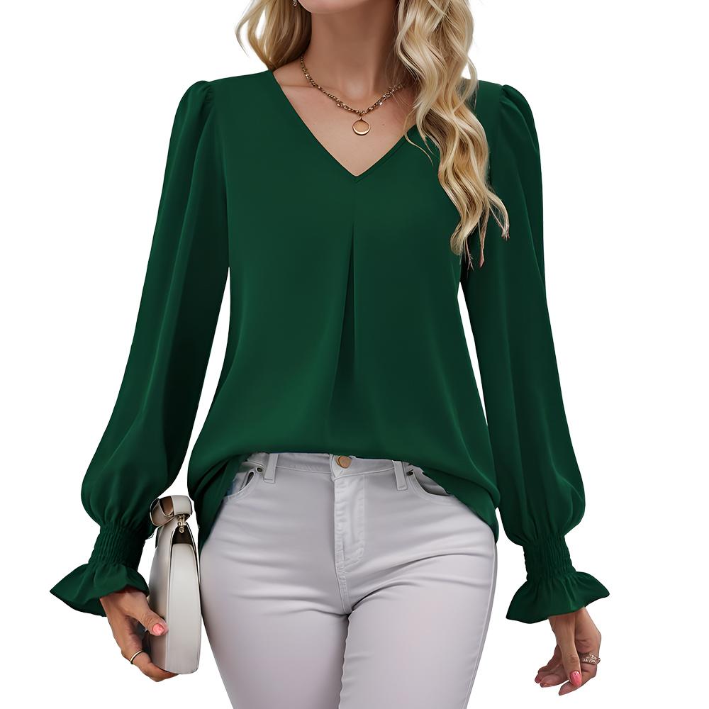 Women's Casual Long Sleeve V Neck Tops Loose Chiffon Shirts