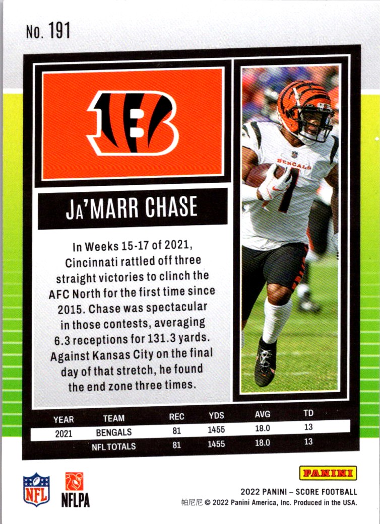 2022 Score Red Ja'Marr Chase Cincinnati Bengals #191