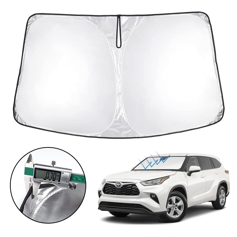 • Upgraded Design —— Unlike other products on the market, we use a double layer of heat shield fabric to keep out the sun. The first layer is premium 210T reflective polyester and the second layer is high-quality fabric. Double insulation, and double protection.The best shade and insulation on the market.