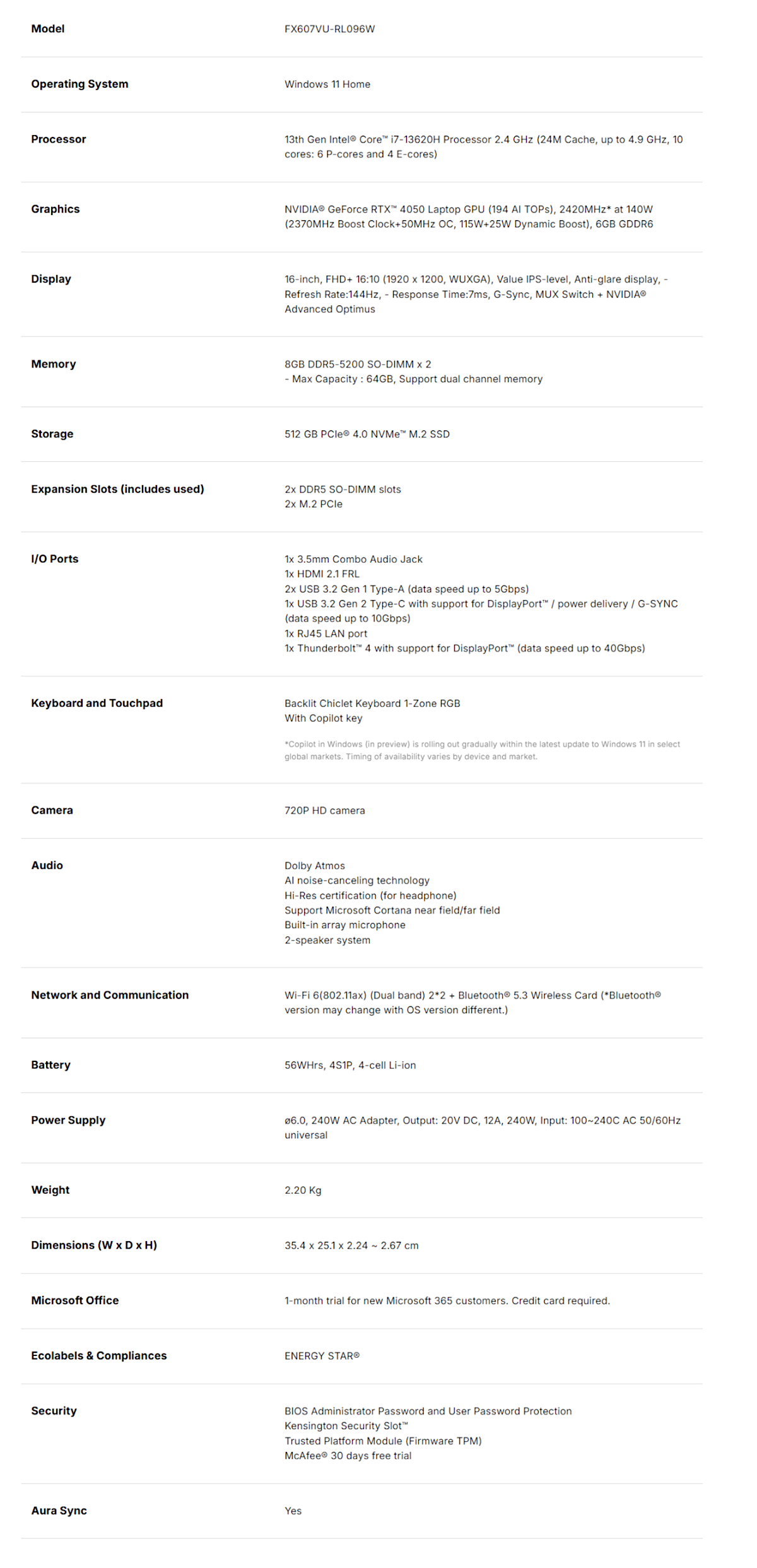 SPECIFICATIONS