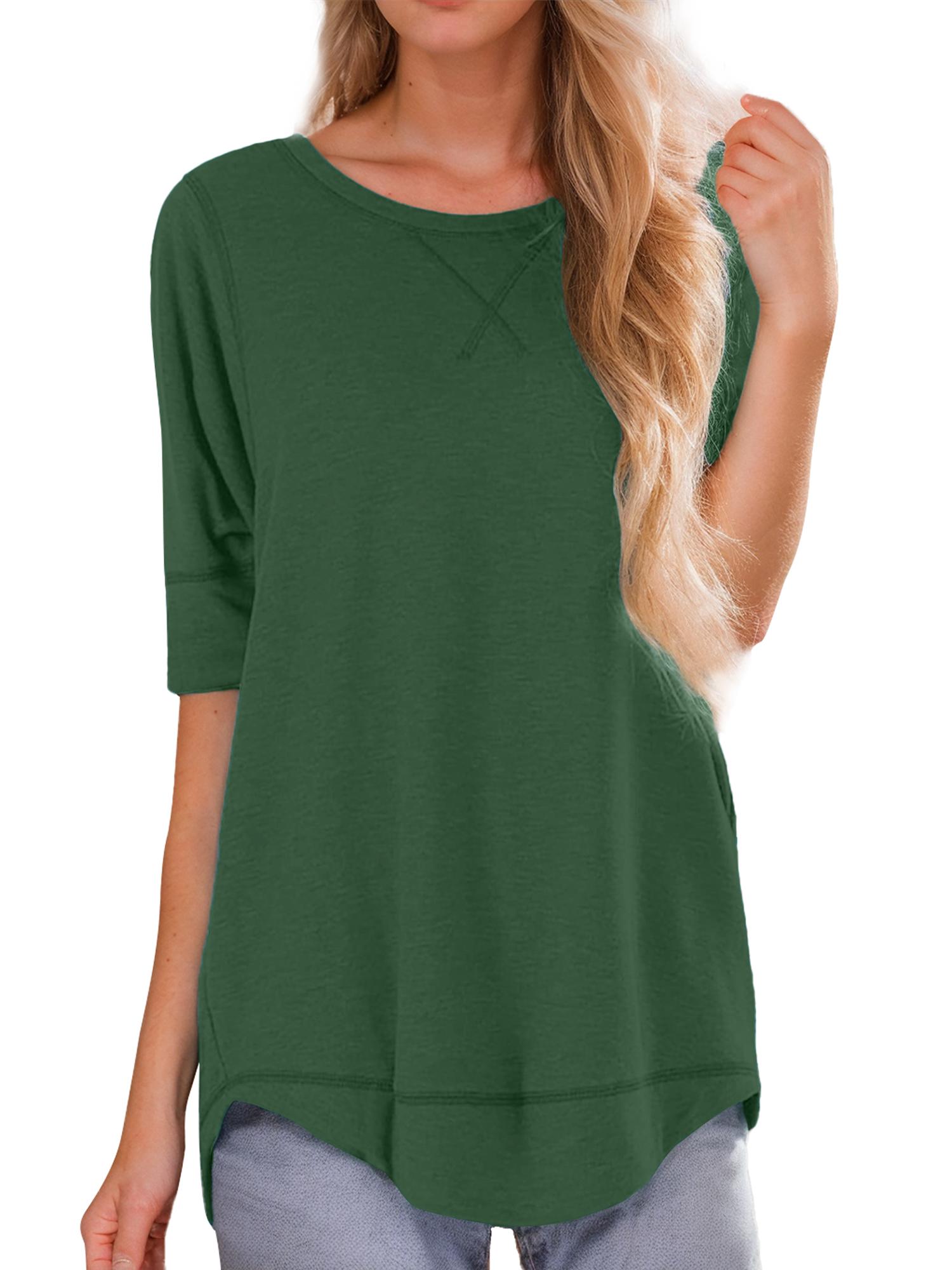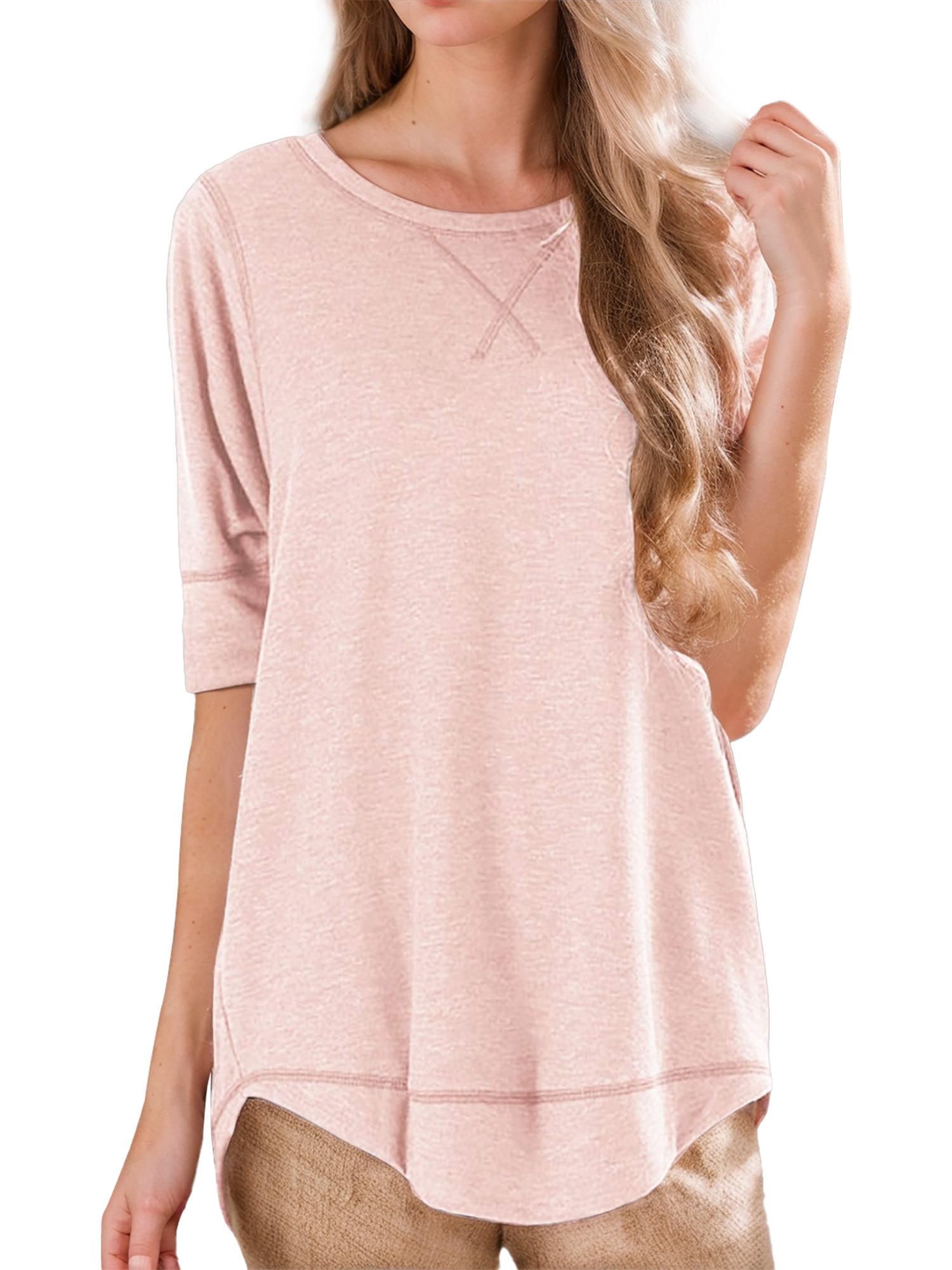 Womens Casual Loose Fit Short Sleeve Tops T Shirts Pullover Crew Neck Tops