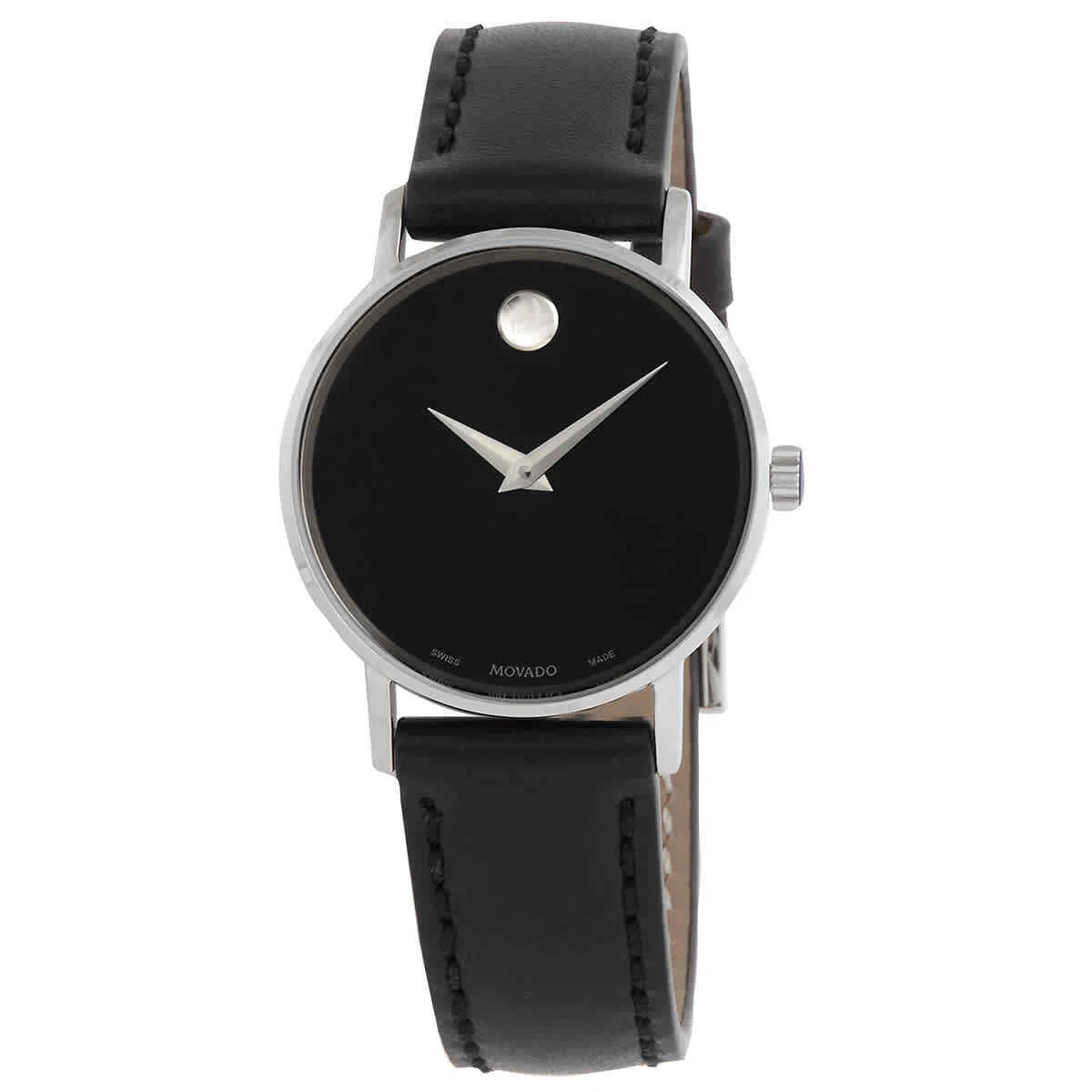 The Movado Women's Museum Classic Black Dial Watch (0607317) exudes elegance with its timeless design, combining modern sophistication with sleek simplicity. The watch features a 28mm silver-tone stainless steel case that perfectly complements the black leather strap, creating a refined and understated aesthetic. A fixed silver-tone stainless steel bezel enhances the sleek look of the watch, while the iconic black dial with silver-tone hands brings a touch of minimalist charm. The signature Movado dot at the 12 o'clock position completes the dial’s elegant appearance.