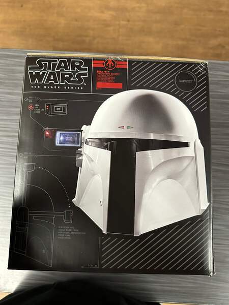Inspired by Star Wars: The Empire Strikes Back, this Star Wars The Black Series Boba Fett Prototype Helmet Premium Electronic Replica is a terrific role-play item boasting premium detail, a flip-down rangefinder with flashing LED lights, and an illuminated heads-up display (HUD). Fans can find out what it's like to suit up for galactic action in the famous bounty hunter's all-white "Super Stormtrooper" armor! Featuring interior padding, adjustable fit, and electronic lights, this full-scale Boba Fett helmet is an iconic addition to any Star Wars fan’s collection. Add it to yours!