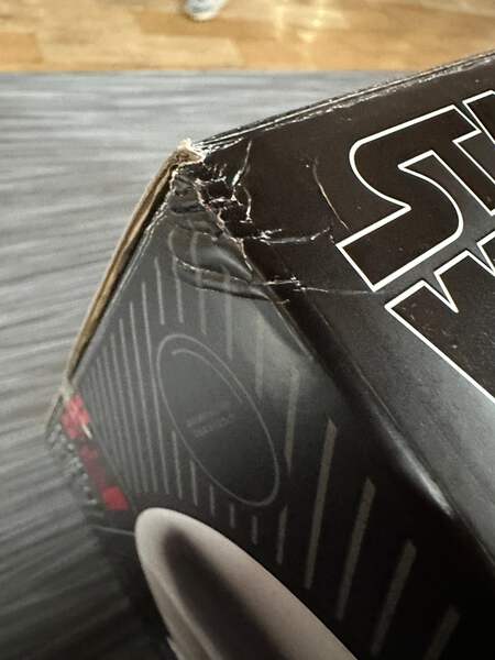 With the press of a button, the Star Wars Boba Fett Prototype from The Black Series Helmet Replica rangefinder drops down, activating 2 red LEDs that flash in a “hunting” pattern, as well as a white LED-illuminated heads-up display (HUD).