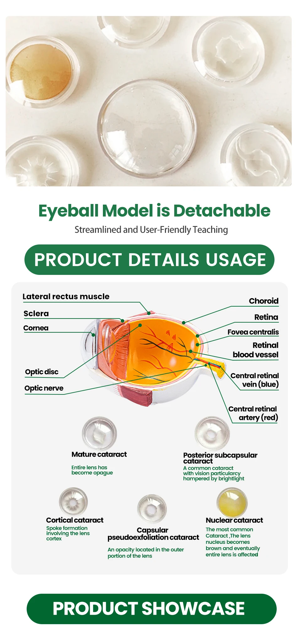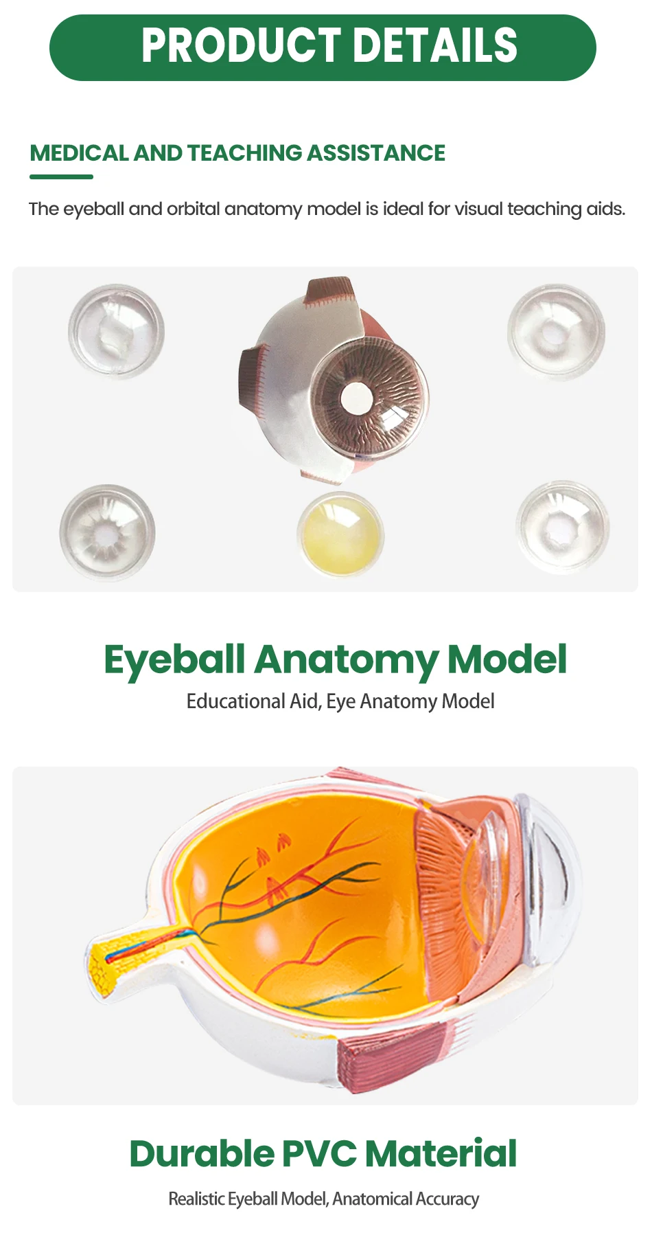 If you are looking for an eyeball model, then you must not miss our eyeball model. Made of PVC material, it is and durable. The model is used to show the anatomy of the human eye. Suitable for teaching and displaying.