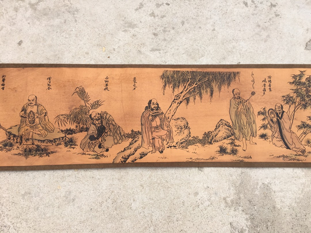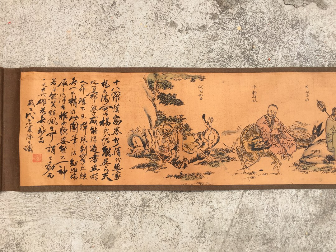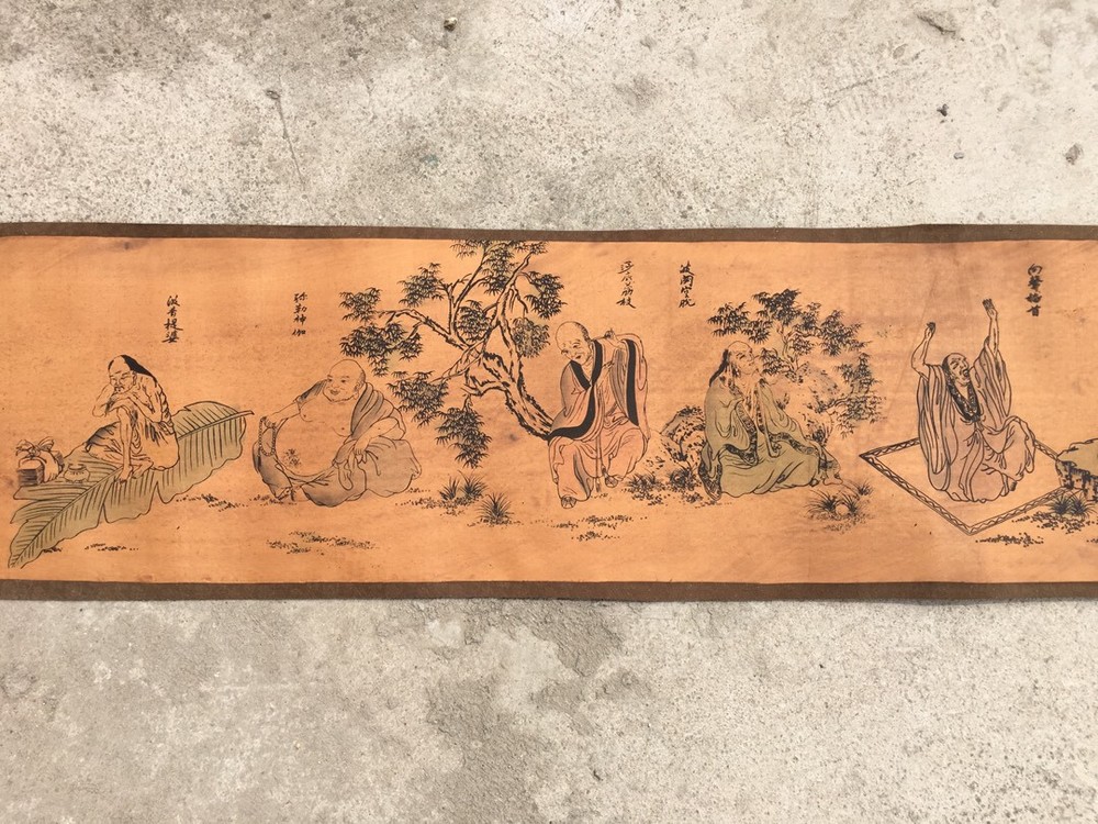 Long scroll of old Chinese paintings 18 Arhat