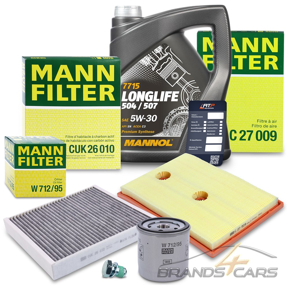 MANN-FILTER Inspektionspaket Set A + 5l 5W-30 MANNOL LONGLIFE 504 / 507 Motoröl