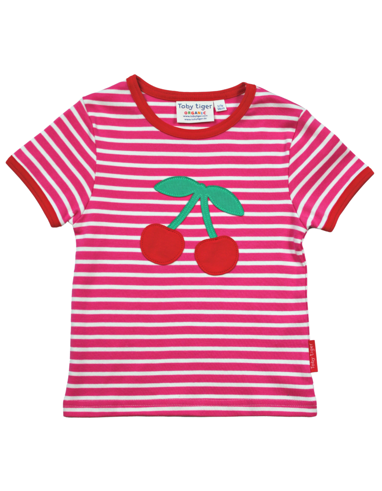 Toby Tiger Bio Baumwoll-Kurzarmshirt mit Erdbeer-Applikation