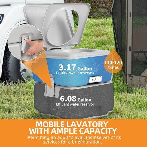 This versatile portable toilet offers exceptional capacity and convenience for your camping and outdoor adventures. Featuring a spacious 12-liter (3.17-gallon) freshwater tank and a generous 23-liter (6.08-gallon) wastewater tank, this unit allows you to enjoy extended use without the need for frequent refilling and emptying. This design ensures your comfort and minimizes disruptions during longer excursions.