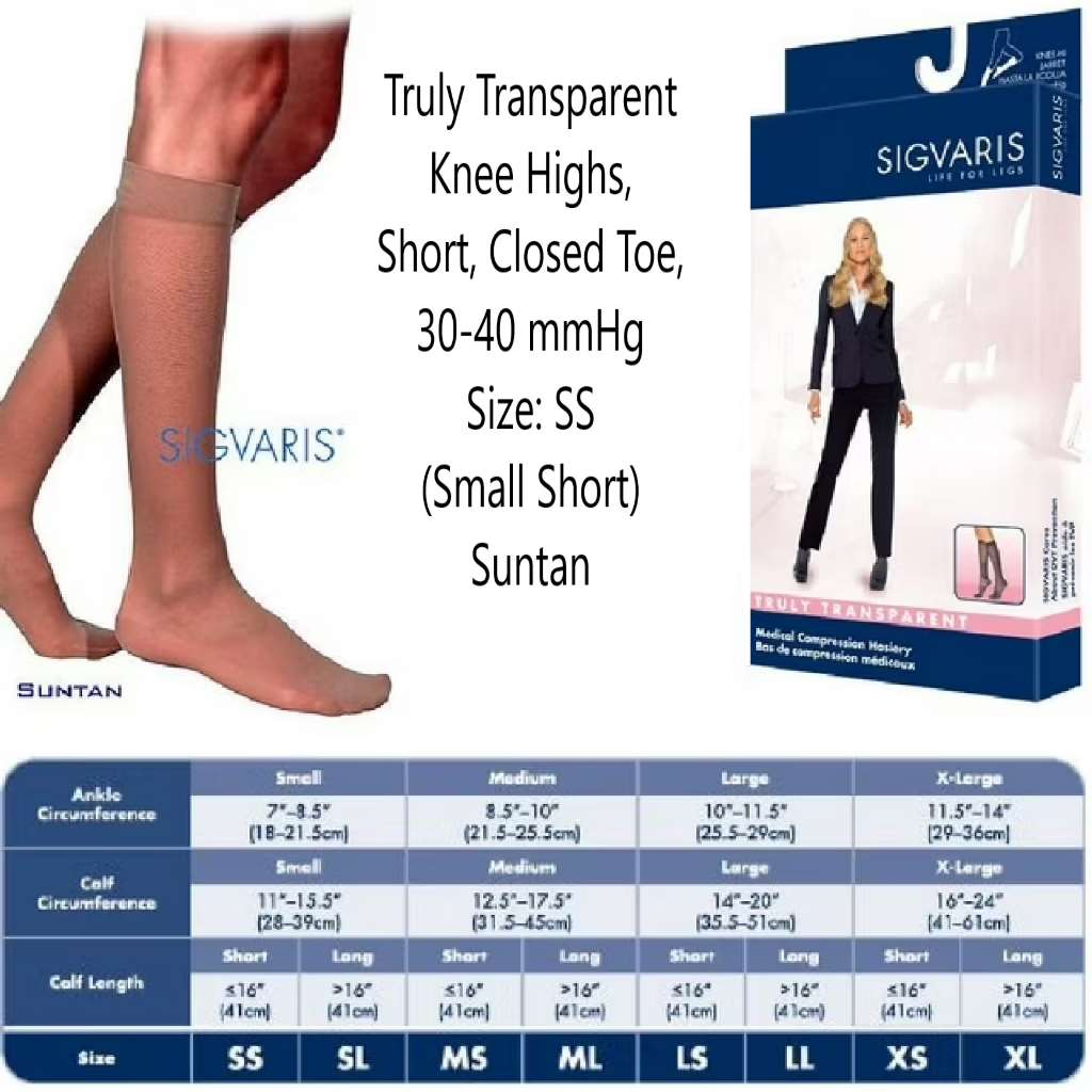 Title : Truly Transparent Knee Highs, Short, Closed Toe, 30-40 mmHg Size: SS (Small Short) Suntan